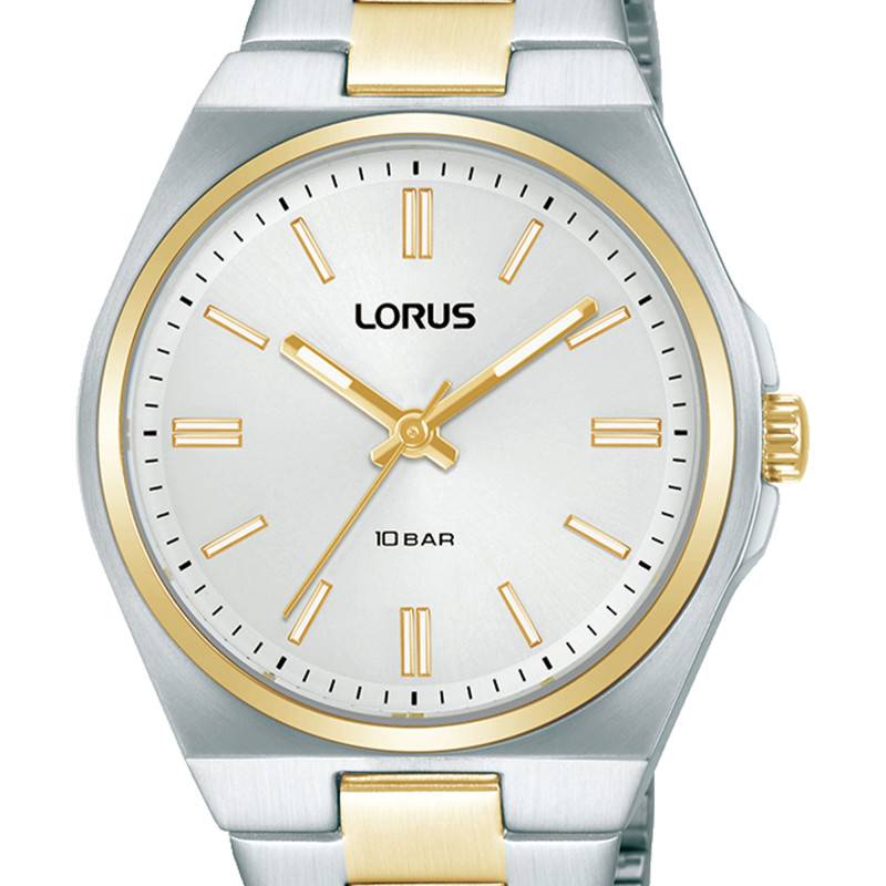 Cette élégante montre pour femme est un exemple parfait d'alliance entre design classique et technologie moderne. Fabriquée par Lorus, elle présente un boîtier rond mesurant 34 mm de diamètre et une épaisseur de 9,60 mm, fait en acier inoxydable, ce qui assure durabilité et élégance. La finition de la montre est superbement divisée entre une texture mate et brossée, accentuée par un revêtement PVD jaune qui lui offre une subtile touche de luxe tout en préservant son allure sobre. Pesant seulement 74 g, elle est confortable au quotidien. Le fond de la montre est solidement vissé, garantissant une protection exceptionnelle contre l'eau et les intempéries.