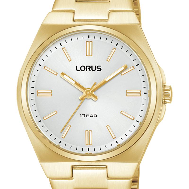 Conçue pour les femmes modernes, la montre Lorus Lady Classic Quartz RG312XX9 marie élégance et praticité avec brio. Le boîtier de forme ronde est fabriqué en acier inoxydable de haute qualité avec un revêtement PVD jaune, lui conférant une teinte dorée élégante qui capte la lumière avec subtilité. Doté d'une finition matte brossée, il assure une allure à la fois moderne et sophistiquée. Le boîtier a un diamètre de 34 mm et une épaisseur de 9,60 mm, assurant une présence élégante mais discrète au poignet. Le poids de 74 grammes garantit un confort optimal pour un port quotidien. Un fond de boîte vissé contribue à l'étanchéité jusqu'à 10 ATM, offrant une protection accrue contre l'eau et l'humidité.