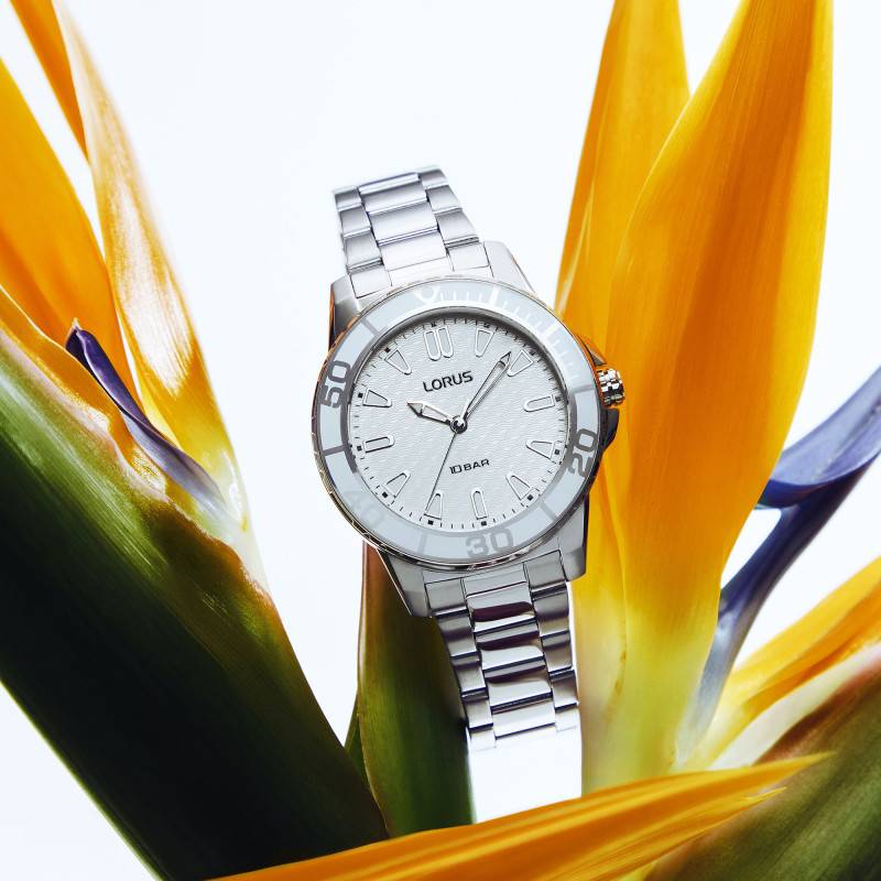 Le bracelet de la Lorus Lady Sport Sea est réalisé en acier inoxydable de couleur grise, apportant une touche élégante et contemporaine à la montre. La finition en acier brossé et poli confère un aspect luxueux tout en conservant une texture agréable au toucher. Le bracelet, d'une largeur de 16 mm, épouse parfaitement le poignet et s'adapte à toutes les situations grâce à sa boucle déployante qui offre un ajustement sécurisé et confortable.