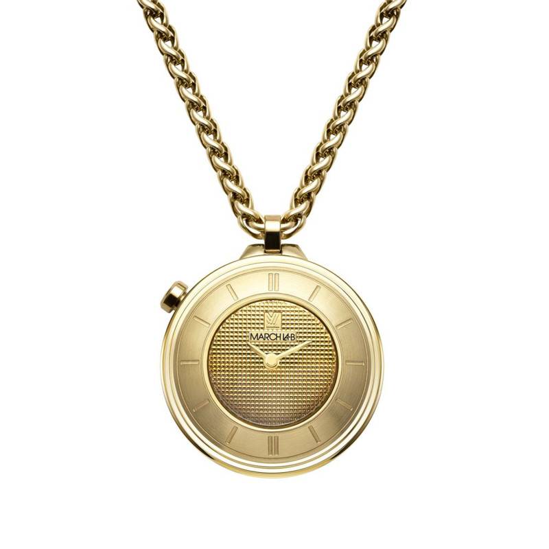 La montre présente une innovation stylistique en la matière, se transformant en un sautoir élégant. Suspendue à une longue chaîne, elle redéfinit l'accessoire horaire en un véritable bijou de cou. Ce style audacieux et singulier souligne le caractère novateur de March LAB, puisant son inspiration dans les bijoux féminins des années 60 tout en adoptant une esthétique de l'ère spatiale. Ce concept permet de porter le temps de manière inédite, ajoutant du charme et de la mystique à cette montre-collier élégante et fonctionnelle, idéale pour les femmes qui souhaitent allier féminité et modernité.