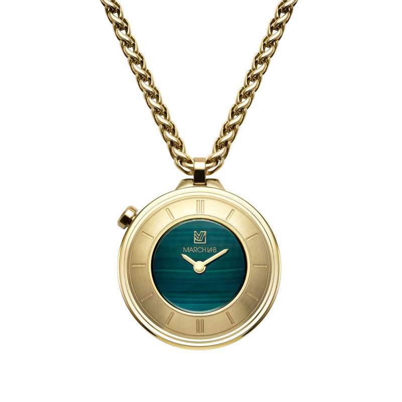 La Lady Volante se distingue également par son mode de port atypique. Accompagnée d'une chaîne dorée à la nuance raffinée, elle se transforme en un sublime sautoir, une véritable déclaration d'élégance et de personnalité. Transporter l'horlogerie dans le domaine de la haute bijouterie, c'est le pari réussi de March LA.B avec cette montre/chaîne hybride. À la fois pratique et ornemental, ce sautoir réinterprète le port de la montre en une expérience stylistique unique, permettant de porter le temps autour du cou comme un collier précieux.