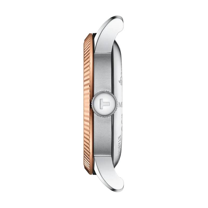 La montre Tissot Le Locle incarne l'élégance intemporelle avec son boîtier rond en acier inoxydable 316L d'un diamètre généreux de 39,30 mm. L'épaisseur de 10,45 mm assure une présence discrète mais affirmée, idéale pour un poignet masculin. Sa lunette en or rose 18 carats, magnifiquement cannelée, rehausse l'ensemble d'une touche luxueuse et sophistiquée qui capte la lumière de manière subtile. Dotée d'un verre saphir haut de gamme, cette montre offre une protection maximale contre les rayures et bénéficie d'un traitement antireflet pour une lisibilité parfaite en toute circonstance.