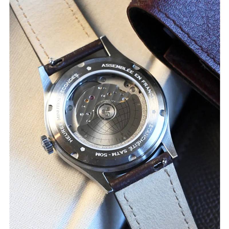 D'une étanchéité de 5 ATM, la montre s'affirme comme une fidèle alliée au quotidien, résistante aux éclaboussures et à la pluie, tout en conservant son intégrité face aux projections d'eau accidentelles. Cette caractéristique assure que, bien que la montre Léon ne soit pas destinée aux immersions profondes, elle est parfaitement adaptée pour accompagner son porteur dans toutes les aventures du quotidien, des réunions d'affaires aux escapades en extérieur, en toute tranquillité et assurance.