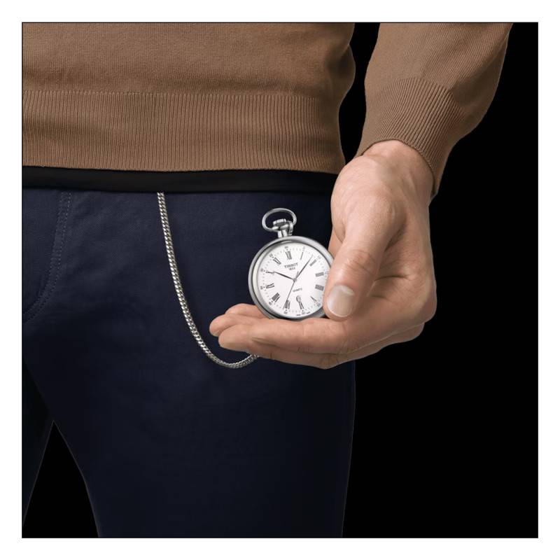 La marque suisse Tissot se positionne avec excellence sur le marché de l'horlogerie et se fait remarquer avec des modèles à grand succès. Elle propose des garde-temps raffinés, habillés et contemporains avec une belle construction. Elle vous propose aujourd'hui sa montre de poche Lepine T82.6.550.13, combinant histoire, tradition et expertise moderne. Issue de la collection T-Pocket, cette dernière présente un design classique et épuré faisant le plaisir de tous les amateurs de ces pièces vintages. Elle arbore un boîtier rond conçu en acier inoxydable 316L avec une magnifique finition polie. Parfaitement équilibré, celui-ci mesure 49 mm de diamètre pour 9,10 mm d'épaisseur et affiche un poids de 53 gr. Il est complété par un verre minéral bombé qui offre une agréable vue du cadran. Une couronne bien soignée, se place à 12 heures, entourée par un anneau pour accrocher la chaîne. Son crantage facilite sa manipulation pour le réglage des aiguilles et de la date. Pour ce qui est du fond emboîté, il affiche une finition en stries en alternance avec des lignes polies pour un rendu esthétique attrayant.