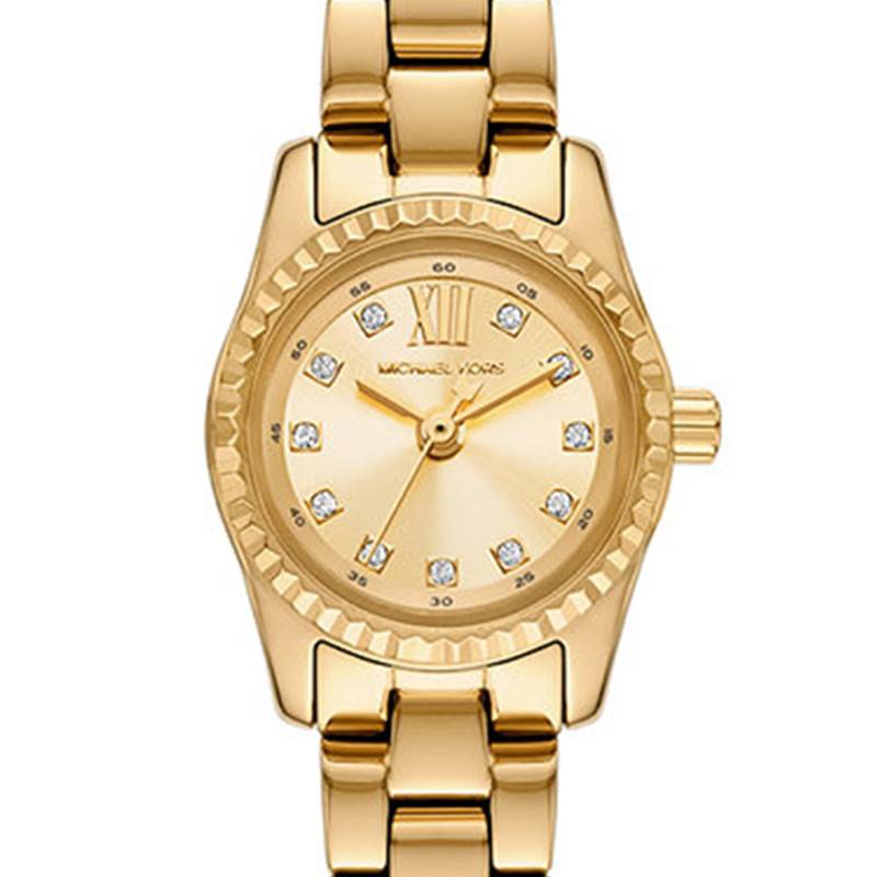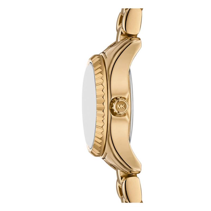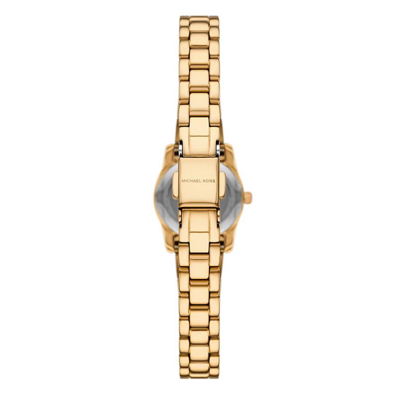 La montre Lexington de Michael Kors, modèle MK4862, est une pièce incontournable pour toutes celles qui recherchent l'élégance et le raffinement. Le design de cette montre se distingue par son allure sophistiquée, accentuée par doré du boîtier. Confectionné en acier inoxydable, le boîtier a une forme ronde et affiche une finition polie impeccable qui attire et reflète la lumière de manière somptueuse. Avec un diamètre de 19 mm et une épaisseur de 10 mm, elle est parfaite pour les poignets féminins, alliant subtilement discrétion et présence. Le fond de la montre est solidement fixé par un système vissé, garantissant une robustesse à toute épreuve et une protection optimale contre l'eau jusqu'à 5 atmosphères. Ce modèle, imprégné du prestige de la maison Michael Kors, offre une allure intemporelle qui s'adapte à toutes les occasions, des plus formelles aux plus décontractées.