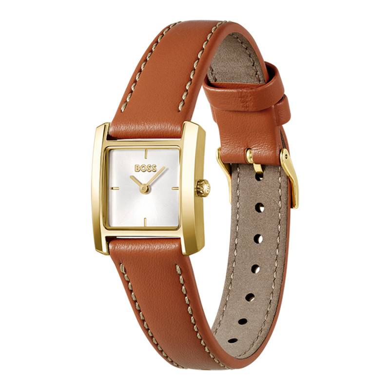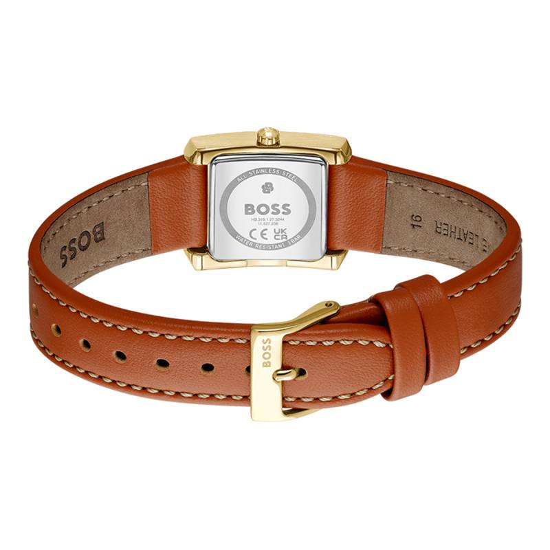 La montre Lucy Scala de Boss incarne à merveille l'équilibre entre élégance et raffinement. Avec une allure résolument moderne, cette montre est dotée d'un boîtier rectangulaire en acier inoxydable qui ajoute une touche de sophistication à votre poignet. Ce boîtier, mesurant 22 mm x 22 mm avec une épaisseur de 6 mm, est à la fois subtil et impactant. Pesant seulement 22 grammes, il allie légèreté et confort. Le verre minéral offre non seulement une grande résistance aux rayures, mais met aussi en valeur la beauté intérieure de ce garde-temps. Enfin, son fond emboîté assure une protection fiable des composants internes.