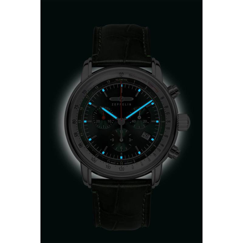 Zeppelin est une marque inspirée de l'héritage historique des dirigeables du même nom, développés à la fin du XIXe siècle. Elle propose des garde-temps intemporels et robustes qui apportent au consommateur exigeant l'élégance intemporelle, l'exclusivité et le raffinement. La marque présente la montre LZ14 Marine 8888-4 qui est un modèle moderne doté d'une grande performance et de fonctionnalités qui vous seront très utiles au quotidien. Elle est livrée avec un boîtier rond conçu en acier inoxydable de finition polie qui s'avérera très confortable au quotidien et assurera à la montre une grande résistance sur de nombreuses années. Il dispose d'un diamètre de 42 mm et d'une épaisseur de 13 mm et conviendra parfaitement aux poignets masculins. Le tout est coiffé par un verre minéral K1 bombé et vous trouverez sur son côté droit une couronne crantée qui assure le réglage des heures, des minutes et de la date. Placée exactement à 3 heures, elle est accompagnée par deux boutons poussoirs à 2 et 4 heures permettant d'actionner les autres fonctions de ce modèle. Enfin, le fond de boîte permet une étanchéité de 5 ATM.