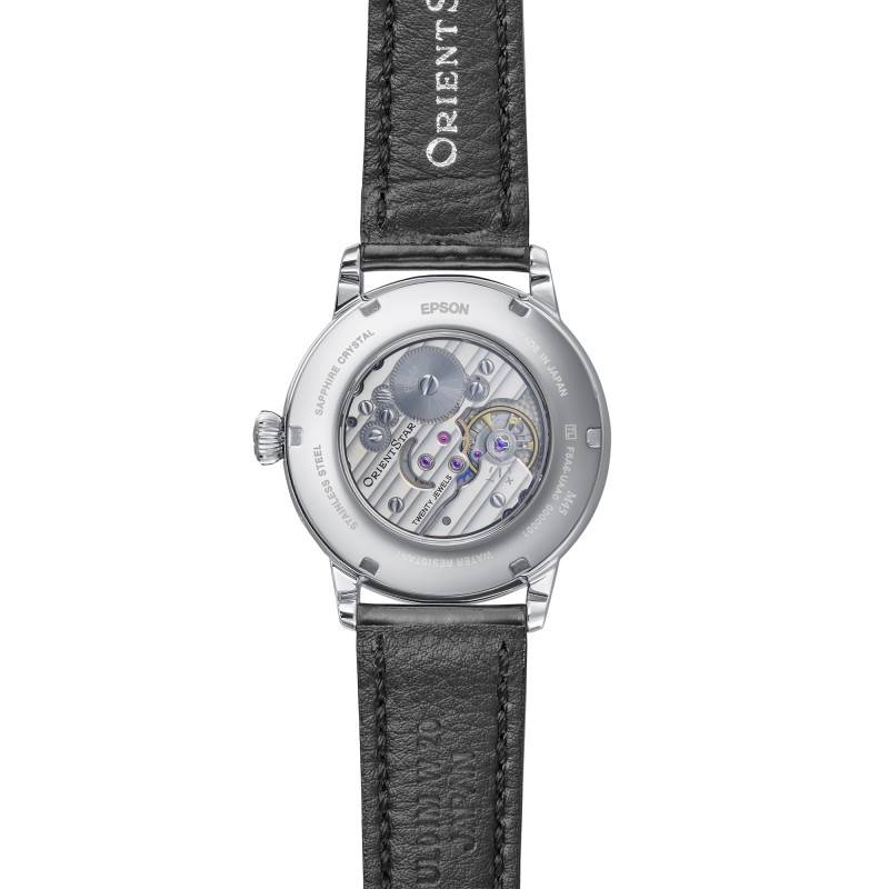 La montre Orient Star est un modèle de sophistication et d'élégance, matérialisé par un boîtier rond en acier inoxydable. Cet acier assure une robustesse et une longévité remarquables, tandis que la finition polie et brillante ajoute une touche de modernité et de style. Les dimensions précises de 39.50 mm de diamètre et 11.90 mm d'épaisseur offrent un équilibre parfait entre présence et confort au poignet. Le fond de boîte est transparent et vissé, garantissant une vision claire du mécanisme grâce à sa robustesse.