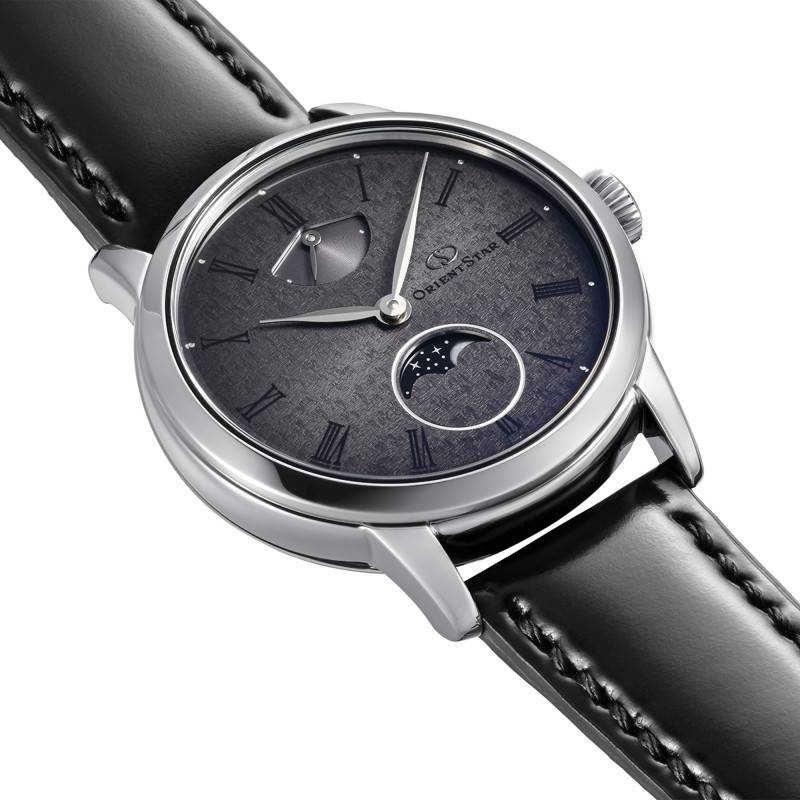 La montre Orient Star M45 F8 Mechanical Moon Phase Hand winding incarne l'excellence horlogère sous sa forme la plus pure. Cette édition limitée à 140 pièces se distingue par son style classique et sophistiqué, parfait pour l'homme moderne qui apprécie les objets de valeur et de qualité. Le boîtier rond en acier inoxydable est d'une dimension de 39,50 mm de diamètre pour une épaisseur de 11,90 mm, offrant une silhouette délicatement équilibrée et agréable à porter. La finition polie et brillante de l'acier souligne la maîtrise technique de la maison Orient, tandis que le fond de boîte transparent et vissé permet d'admirer la beauté du mouvement interne.