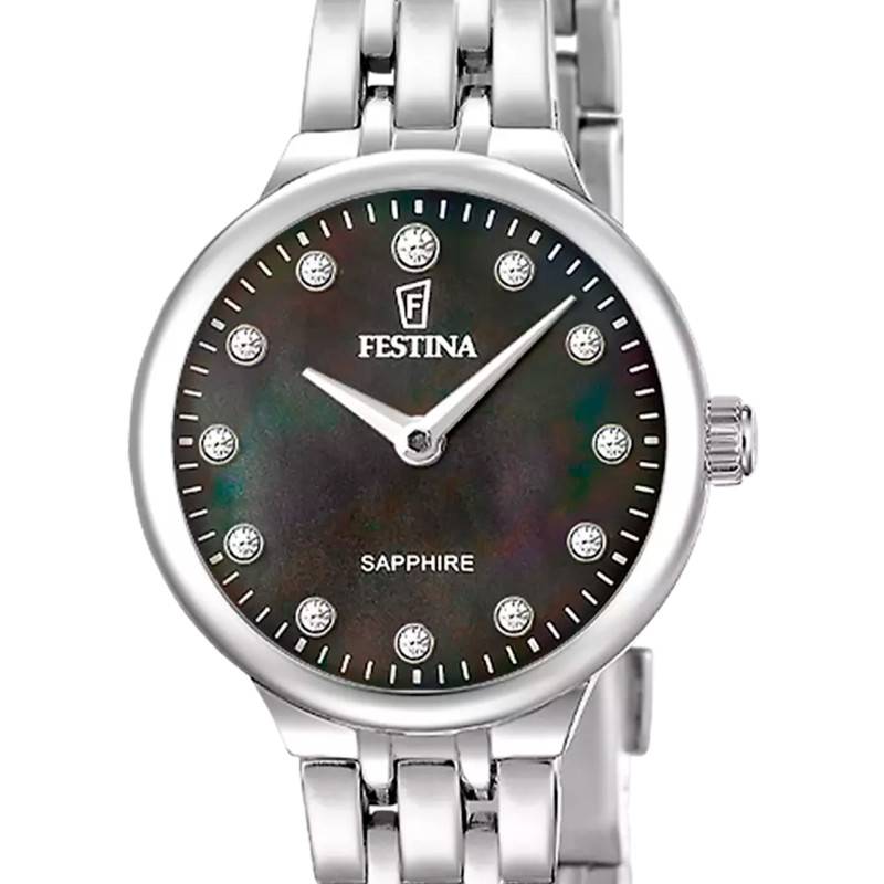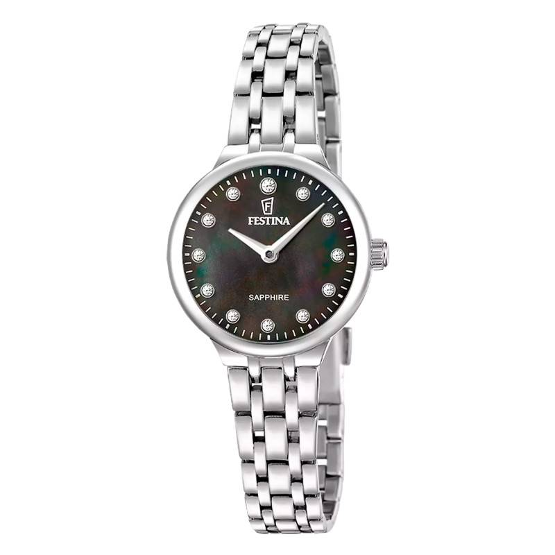 La montre Festina Mademoiselle se distingue par son design raffiné et intemporel, mettant en valeur l'élégance naturelle de la personne qui la porte. Le boîtier rond en acier inoxydable, célèbre pour sa robustesse et sa résistance à la corrosion, est peint d'une teinte gris sophistiquée avec une finition polie/brillante qui capte harmonieusement la lumière. Le diamètre de 26 mm et l'épaisseur de 6,70 mm font de cette montre un accessoire discret, sans sacrifier la visibilité de ses fonctionnalités. À 46 grammes, elle est conçue pour offrir un confort non négligeable, même lorsqu'elle est portée pendant de longues périodes.