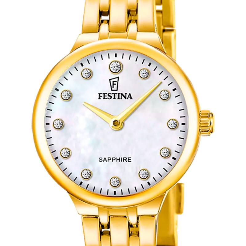 La montre Mademoiselle de Festina, identifiable par la référence F20745/1, traduit une élégance raffinée adaptée aux femmes modernes. Confectionnée avec un soin exceptionnel, elle arbore un boîtier rond de 26 mm de diamètre et 6,70 mm d'épaisseur. Fabriqué en acier inoxydable, le boîtier est sublimé par une finition PVD jaune à la fois polie et brillante, apportant une touche luxueuse et contemporaine à cette pièce horlogère. Le verre saphir, reconnu pour sa résistance incomparable aux rayures, offre une protection optimale au cadran délicat. Avec un poids harmonieux de 46 g, cette montre assure une présence subtile mais notable sur le poignet, idéale pour un port quotidien ou lors d'événements particuliers.