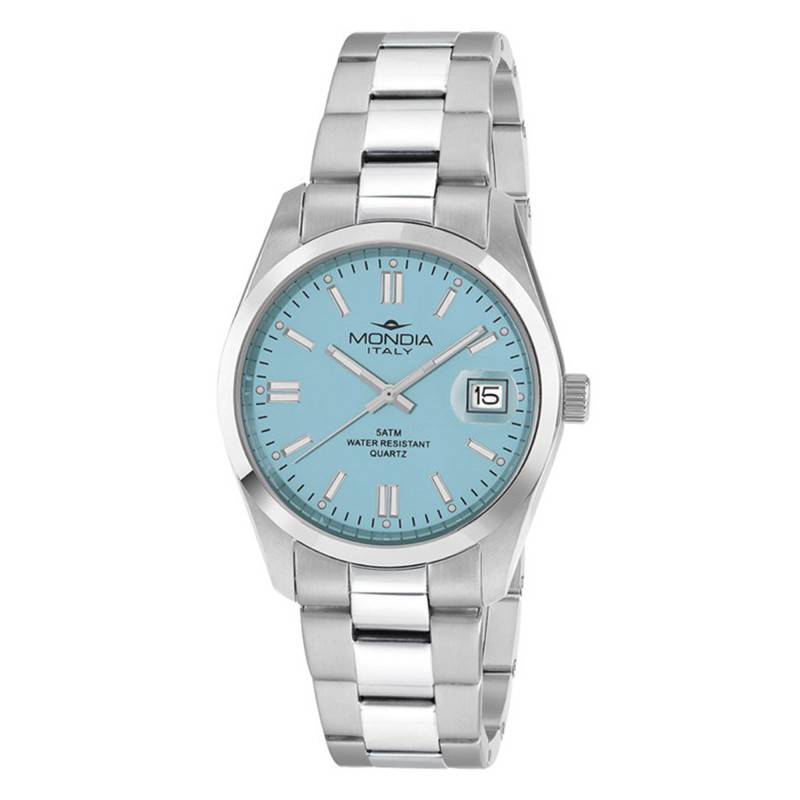 La montre Madison City Lady MI-816-SS-07AZ-OY de Mondia incarne une sophistication italienne avec une touche moderne, parfaite pour la femme moderne. Avec un boîtier rond en acier inoxydable, cette montre marie une finition mate (brossée/satinée) à un poli brillant, offrant un design harmonieux et polyvalent. Elle mesure 34 mm de diamètre avec une épaisseur de 9 mm, fusionnant ainsi un profil élégant et discret, idéal pour ceux qui apprécient la subtilité. Enfin, son verre minéral offre une protection contre les égratignures quotidiennes, assurant que votre montre reste impeccable.