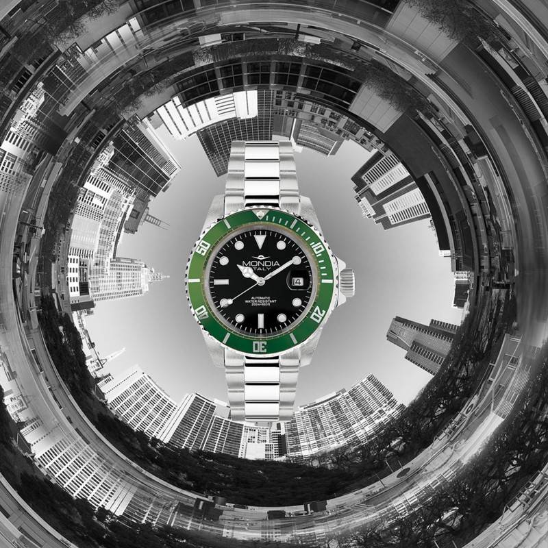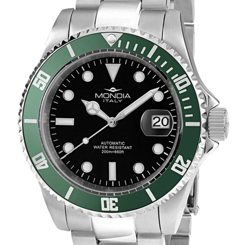 Les créations de Mondia vous sublimeront au quotidien. Cette marque suisse, fondée en 1935 par Armond Waszme, fabrique des modèles faisant preuve d'un savoir-faire artisanal traditionnel. Elle s'est fait connaître sur le marché mondial grâce à ses choix méticuleux de matériaux nobles. En choisissant les conceptions de cette maison, vous choisissez de vous démarquer des autres avec style et élégance. Aujourd'hui, elle vous propose cette montre MI-786-SSGR-BK-OY de la collection Madison Diver Automatic. Son boîtier est fabriqué en acier inoxydable 316L poli et brossé. D'un diamètre de 42 mm sur une épaisseur de 12 mm, il présente une belle couleur grise. Sa lunette crantée unidirectionnelle accueille un insert vert constitué de graduations et d'un repère luminescent. D'une allure rayonnante, son cadran peut être admiré à travers un verre minéral plat. Vous trouverez à droite une couronne crantée qui sert à régler plus facilement les éléments centraux. Enfin, notez que le modèle possède un fond de boîte vissé qui lui octroie une étanchéité de 20 ATM, idéale pour les activités de plongées.