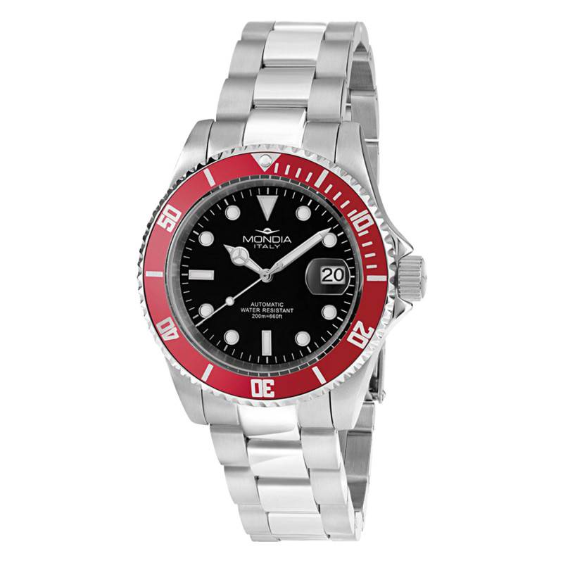 Mondia est une marque horlogère d'origine suisse qui s'est considérablement hissée à la tête du marché depuis sa création en 1935. Reconnue à sa juste valeur, elle conçoit avec soin des modèles faisant preuve d'un savoir-faire traditionnel tout en restant à jour sur l'avancée technologique. Soucieuse de ravir les poignets masculins, elle propose aux hommes des créations qui allient la sophistication au design. Admirez la splendeur de cette montre MI-786-SSRD-BK-OY provenant de la collection Madison Diver Automatic. Elle est munie d'un boîtier de forme ronde qui est délicatement réalisé en acier inoxydable 316L lui conférant une durabilité sans faille face à la corrosion et aux dommages inesthétiques. Conçue pour les hommes en quête d'élégance, elle affiche un diamètre de 42 mm sur une épaisseur de 12 mm. Il présente une teinte grise mise en valeur par des finitions polies et brossées. Pour plus d'utilité, elle est munie d'une lunette unidirectionnelle crantée qui affiche un insert rouge caractérisé par un repère luminescent et un chemin de fer des minutes. Un verre minéral plat vient couvrir son magnifique cadran. Grâce à sa couronne crantée et vissée, vous réglerez plus facilement les éléments centraux. Façonnée pour relever les plus grands défis sportifs, ce garde-temps dispose d'un fond de boite vissé qui lui garantit une étanchéité de 20 ATM.
