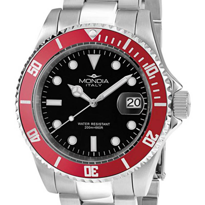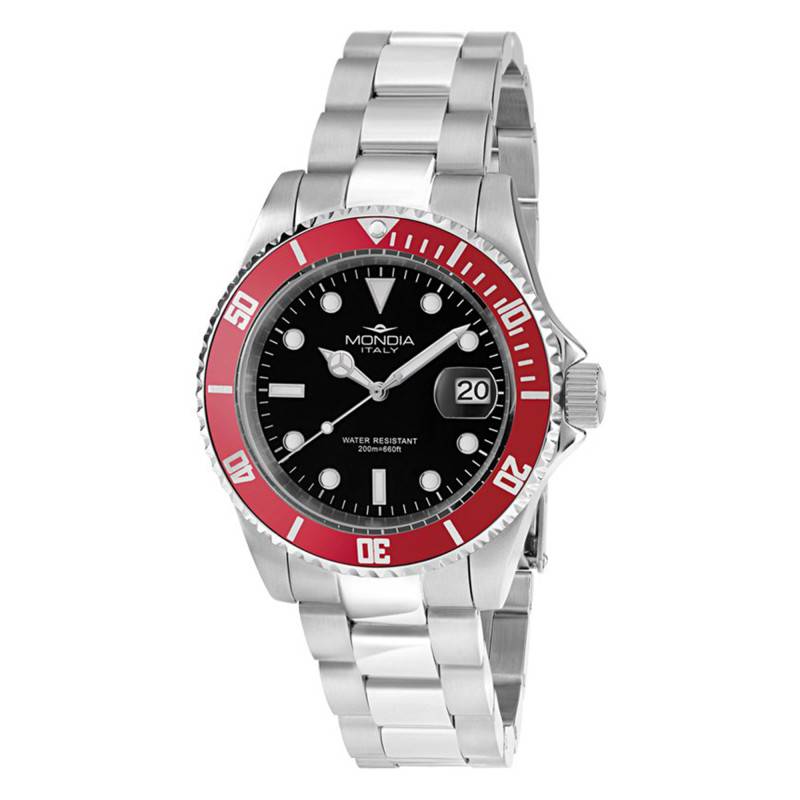 La marque horlogère Mondia propose de nombreuses montres adaptées à différents goûts et occasions. Elle fait attention au choix des matériaux utilisés pour la conception de ses créations afin de garantir leur résistance. Cette entreprise présente dans la collection Madison de ravissants modèles pour homme qui peuvent vous accompagner dans des aventures marines. Cette belle montre MI-785-SSRD-BK-OY se compose d'un boîtier de couleur argentée conçu en acier inoxydable 316L. De forme ronde, il comprend un diamètre de 42 mm et d'une épaisseur de 12 mm et conviendra parfaitement aux poignets des hommes. Il est surplombé par un verre minéral plat qui laisse admirer la beauté du cadran qui se trouve entouré par une lunette crantée affichant un insert rouge affichant un marqueur luminescent. Elle est unidirectionnelle et présente la graduation d'un chemin de fer des minutes qui vous sera très utile lors de la plongée. À 3 heures, est positionnée une couronne vissée qui vous donnera l'accès au réglage des heures et des minutes. Enfin, ce garde-temps dispose d'un fond vissé qui lui accorde une étanchéité de 20 ATM.