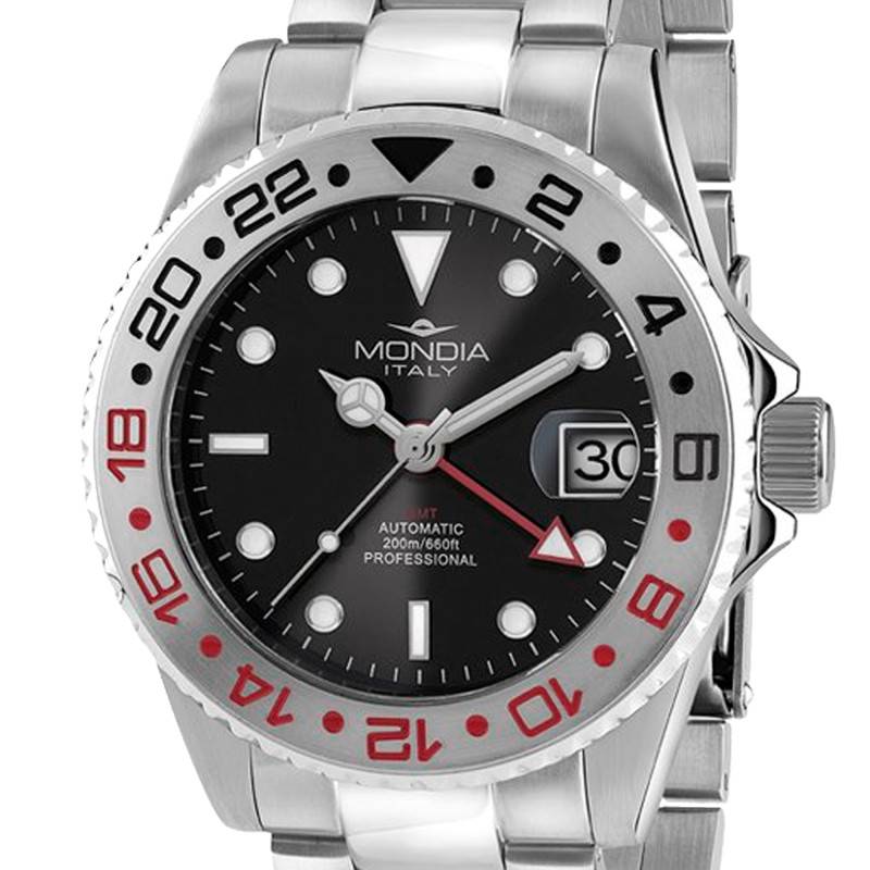 Depuis 1935, la marque Mondia fabrique des montres durables qui peuvent être portées en toute occasion. Elle vous met à disposition à travers ses collections une gamme de modèles intemporels, résistants et élégants qui magnifieront parfaitement votre poignet. Issue de la collection Madison - Diver, cette montre MI-813-SSSS-BK-OY saura répondre à vos attentes tout en vous communiquant le temps avec facilité. Elle arbore un boîtier en acier inoxydable disposant d'un diamètre de 41 mm et d'une épaisseur de 12 mm afin de parfaitement convenir aux poignets masculins. La lunette rotative et crantée dont il est muni affiche des chiffres arabes et des cercles de teintes noire et rouge représentant la graduation GMT. Un verre minéral surmonte les éléments du cadran et vous trouverez un bouton remontoir gris cranté à 3 heures qui vous facilitera le réglage des diverses fonctionnalités. Enfin, le fond de boîte assure une étanchéité de 20 ATM, soit 200 mètres.