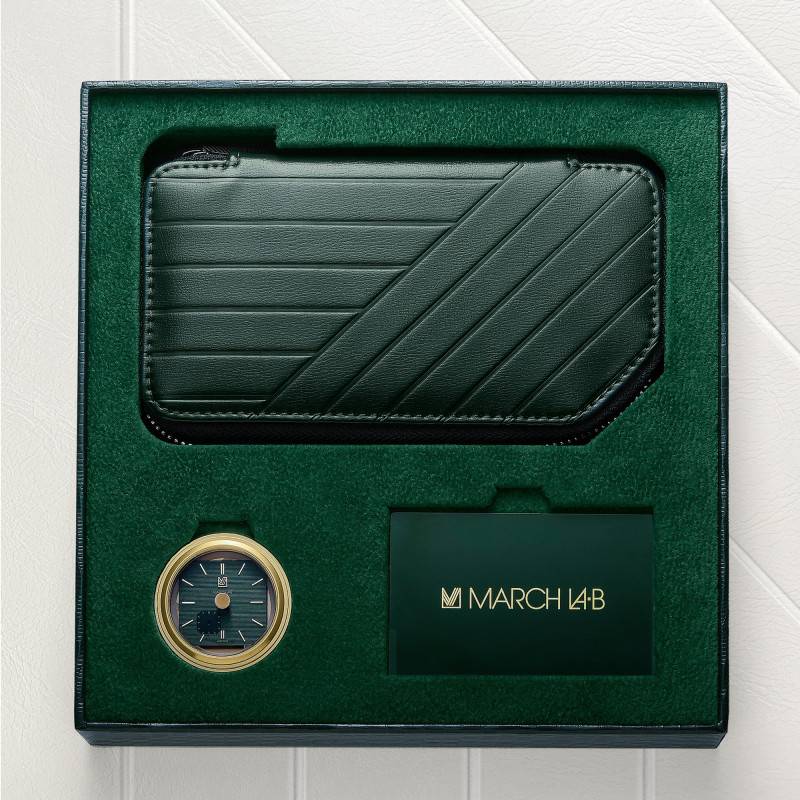 Le cadran de cette Mansart est un chef-d'œuvre de design avec sa finition striée horizontalement qui enrichit sa texture et son éclat. La montre est fournie avec deux cadrans interchangeables : un cadran doré, déjà monté sur la montre, et un cadran vert foncé, signature de la marque, soigneusement présenté dans un écrin doré. À 6 heures, le compteur de petite seconde ajoute une dimension pratique et esthétique, offrant une lecture précise du temps. Protégé par un verre saphir plat traité antireflets, le cadran reste lisible sous toutes les conditions de lumière, tout en étant résistant aux rayures.