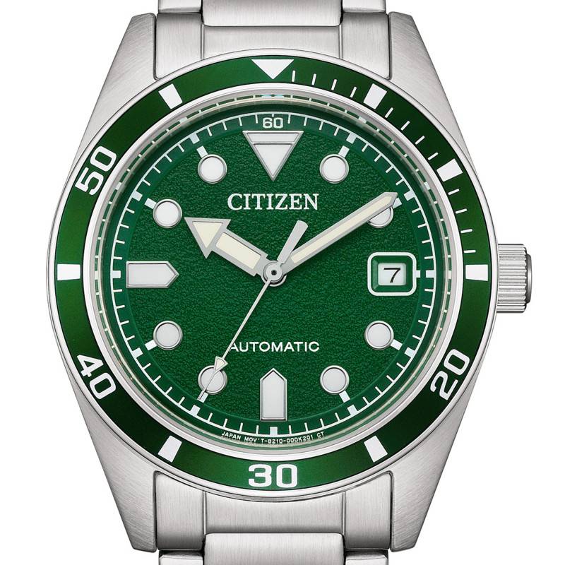 Le cadran de cette montre de Citizen est un véritable bijou d'horlogerie moderne. Sa couleur verte et sa finition grainée offrent une dimension de profondeur et d’intensité rares. La présence des aiguilles et des index luminescents assure une lisibilité impeccable quelles que soient les conditions d'éclairage. Avec un affichage analogique, il indique les heures, les minutes et les secondes, complété par un guichet de date finement intégré sur le côté droit. Le cadran est protégé par un verre plat, solide et résistant, qui conserve la clarté nécessaire pour une lecture facile du temps. Le chemin de fer des minutes distinctement imprimé ajoute une touche classique à ce garde-temps au design résolument contemporain.
