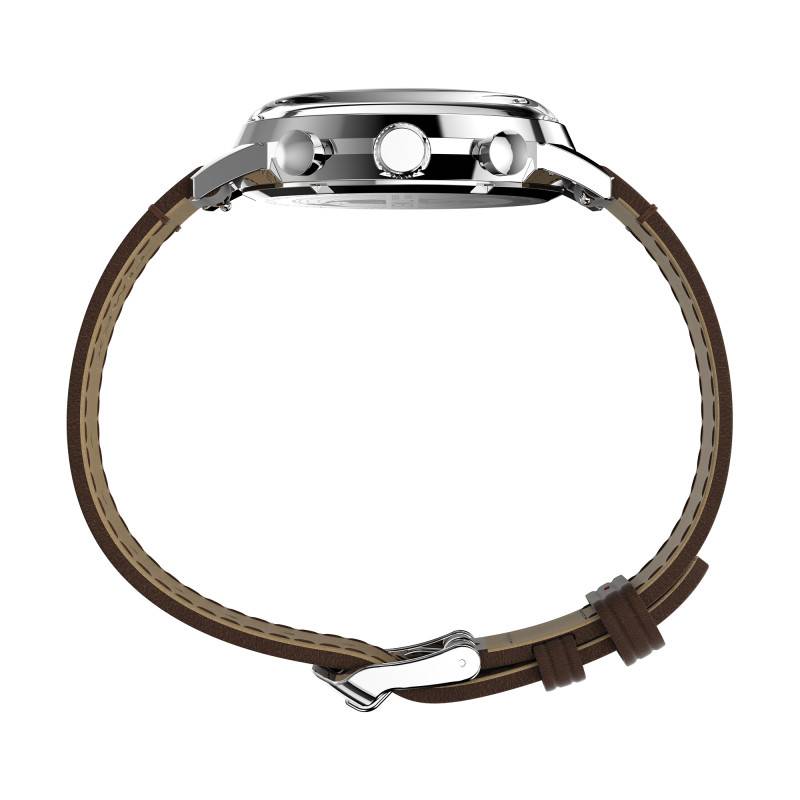 Le bracelet de la Timex Marlin est confectionné en cuir de bovin marron, apportant une touche classique et intemporelle à l'ensemble. Avec une largeur d'entrecorne de 20 mm, il s'adapte confortablement à la forme du poignet tout en maintenant un style formel et approprié à chaque occasion. La monture est sécurisée par une boucle ardillon, combinant facilité d'utilisation et sécurité pour le porteur.