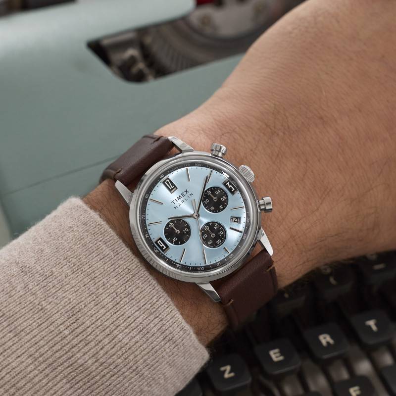 La Montre Timex Marlin Chronograph est une véritable incarnation de l'élégance moderne alliée aux performances techniques remarquables. Son boîtier rond en acier inoxydable de 40 mm de diamètre et d'une épaisseur de 13,50 mm offre une présence notable et sophistiquée sur le poignet. Avec un poids de 54 grammes, la montre est suffisamment légère pour une utilisation quotidienne, tout en étant robuste et durable grâce à sa construction en matériaux de qualité supérieure. La finition polie du boîtier ajoute une touche de brillance et de complexité visuelle. Sur le côté droit, on retrouve un bouton remontoir associé à deux boutons poussoirs afin de contrôler la fonction chronographe, ce qui en fait un choix idéal pour ceux fréquentant les événements sportifs ou aimant simplement mesurer le temps écoulé avec précision.