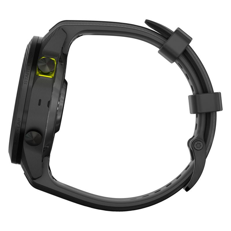 Ce cadran à l'allure saisissante vous accordera une lecture du temps précise. Il se pare d'un écran tactile Amoled qui vous offrira une lisibilité optimale à chaque instant. Ce dernier est pourvu d'une haute définition de 390 x 390 pixels, ce qui vous accordera une bonne résolution visuelle. Son ouverture affiche 30,40 mm de diamètre offrant une lecture aisée. Grâce à ce cadran, vous pourrez lire les heures, les minutes, les secondes mais aussi vous informer de plusieurs autres fonctions que vous pouvez programmer à votre guise via les paramètres. Son pourtour signé Garmin à 6h est echelloné par des graduations en chiffres arabes et des traits servant au marquage du temps de récupération et du niveau de VO2 max.