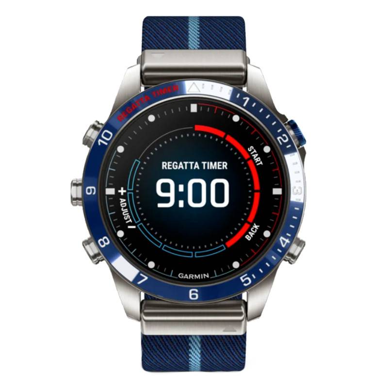 Pionnière dans la construction de montres connectées conçues pour résister à tous les types de conditions, Garmin a su se faire un nom dans l'univers de l'horlogerie. Toujours à la recherche de la perfection, la marque se surpasse une nouvelle fois avec cette nouvelle création, la montre MARQ Captain Gen 2 010-02648-11. Taillée pour l'exploration et faites pour que vous puissiez repousser vos limites, c'est une montre résolument moderne qui saura vous accompagner dans toutes vos aventures. Tout d'abord, faisant 46mm, son diamètre offre une très belle ouverture de cadran. D'une épaisseur de 15mm, elle se portera facilement. Sa carrure est entièrement construite en titane de grade 5. La marque a choisi ce matériau car il est très léger et résiste à de nombreuses choses telles que la corrosion. Une belle lunette fixe en céramique bleue est présente. Celle-ci bénéficie d'une échelle de régate de couleur blanche. Trois boutons-poussoir placés sur le flanc gauche, et 2 placés sur la gauche vous donneront la possibilité de régler et d'utiliser les nombreuses fonctions que propose ce garde-temps. En faisant basculer la montre, vous découvrirez un robuste fond de boîte bien maintenu par 4 vis. Vous y trouverez notamment un capteur de rythme cardiaque et de nombreuses gravures relatives aux informations techniques de la montre.