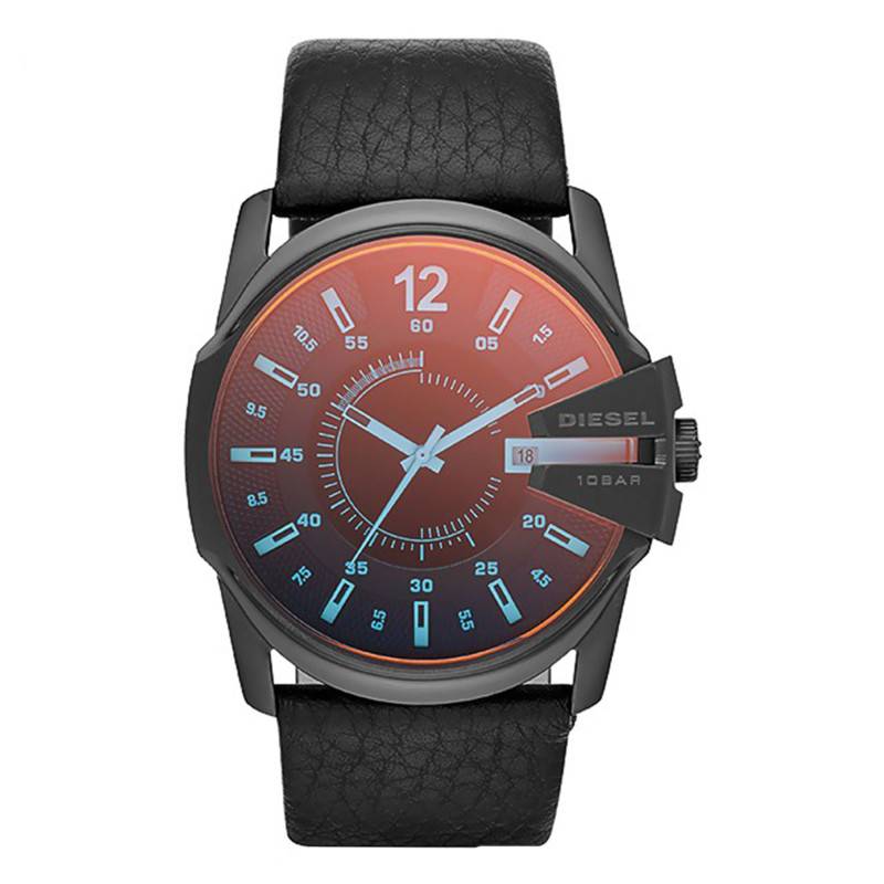 Nous retrouvons un bracelet en cuir de couleur noire pour accompagner ce modèle Master Chief de la maison Diesel. La fermeture de celui-ci s'opère via une boucle ardillon classique en acier. l'entrecorne est de 27 millimètres.
