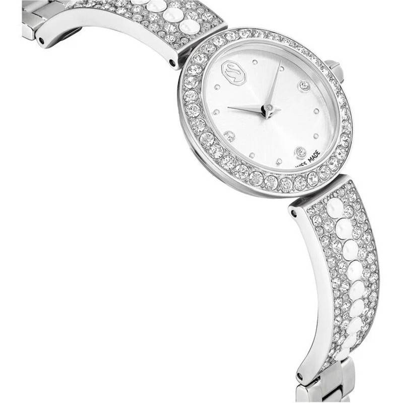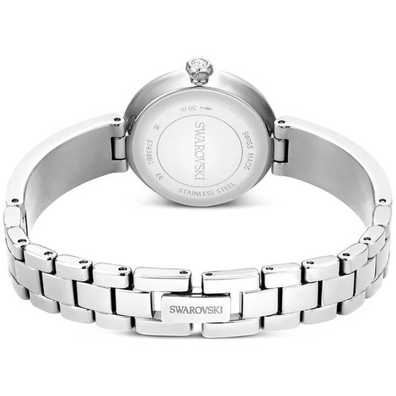Au cœur de cette montre se trouve un mouvement quartz suisse, reconnu pour sa précision et sa fiabilité. Ce mouvement permet une indication précise des heures, minutes, garantissant que vous restez toujours à l'heure. Le mouvement quartz, silencieux et efficace, ne nécessite qu'un entretien minimal, ce qui fait de cette montre Swarovski une pièce à la fois sophistiquée et pratique.