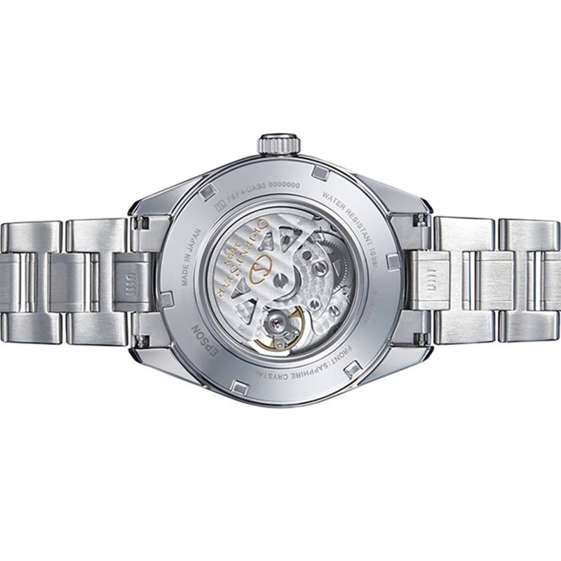 Orient Star vous propose de découvrir cette montre contemporaine qui saura faire des heureux. Ce bijou horloger est doté d'un boîtier en acier inoxydable. Avec un diamètre de 41 millimètres, cette montre viendra se poser avec facilité sur votre poignet en étant ni trop grosse, ni trop petite. Une lunette en acier viendra se poser sur le contour du boîtier, accentuant ainsi votre regard sur le cadran de la montre. Un verre saphir viendra se poser au-dessus du cadran. Il viendra protéger ce dernier et apporter une lisibilité de qualité sur le cadran. Une couronne remontoir crantée viendra se placer à trois heures. Vous pourrez grâce à cette dernière régler les aiguilles de la montre afin d'afficher l'heure qui vous convient le plus. Enfin, un fond de boîtier transparent et vissé assurera une étanchéité de 10 ATM.