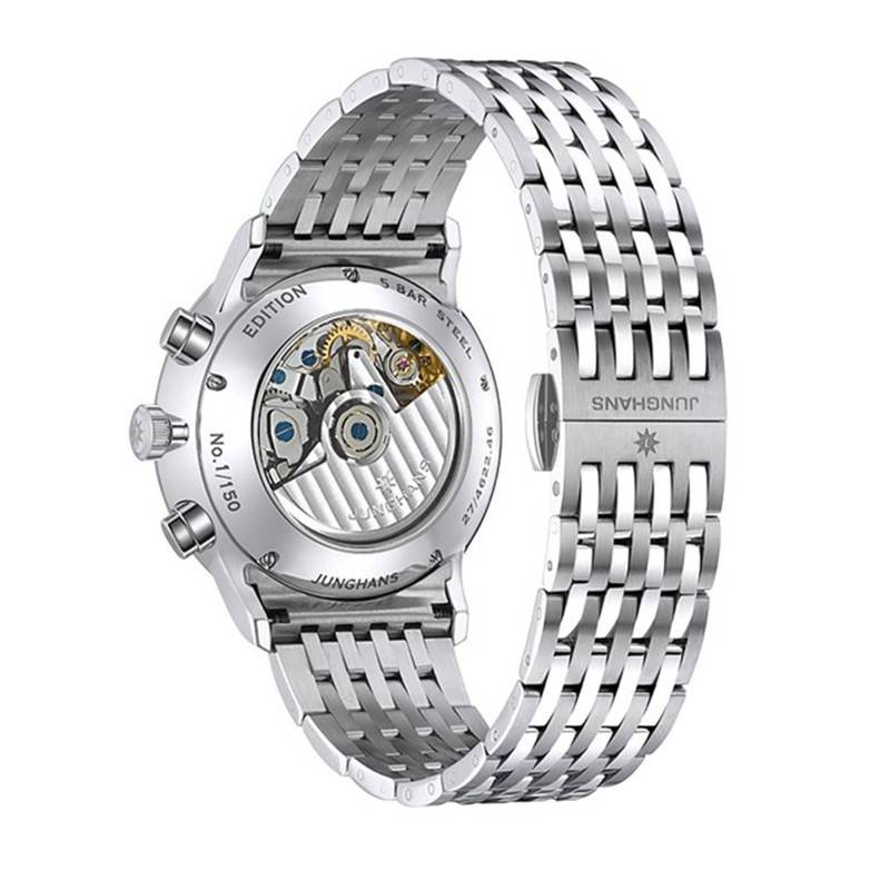 La montre Meister Chronoscope de Junghans est une merveilleuse combinaison de design et de précision horlogère. Son boîtier rond de 40,70 mm de diamètre est fabriqué en acier inoxydable, assurant non seulement une robustesse impressionnante mais aussi une apparence élégante et moderne. Cette montre est construite avec un savoir-faire allemand, garantissant une construction de haute qualité. L'épaisseur de 13,90 mm de son boîtier témoigne d'une présence solide tout en offrant un confort remarquable au poignet. Le fond de la montre est transparent, maintenu par des vis, permettant d'admirer le mouvement interne, une caractéristique prisée par les amateurs de montres mécaniques. De plus, étant résistante à l'eau jusqu'à 5 ATM, cette montre offre une résistance suffisante pour la vie quotidienne et les activités récréatives légères. Limitée à 150 exemplaires, l'édition 2026, sportive et moderne, est dotée d'un bracelet en métal et d'un cadran couleur pétrole.