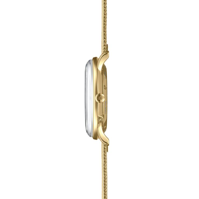 Le bracelet de cette montre est un chef-d'œuvre de confort et d'esthétique. Fabriqué en acier inoxydable, il utilise une maille milanaise dorée qui confère à la montre une flexibilité et une douceur exceptionnelles. C'est un choix à la fois élégant et fonctionnel pour préserver le style tout au long de la journée. La largeur de l'20 mm s'adapte parfaitement au poignet, tandis que le fermoir à boucle clipable assure une sécurité sans faille tout en permettant une ajustabilité simplifiée pour le confort individuel.