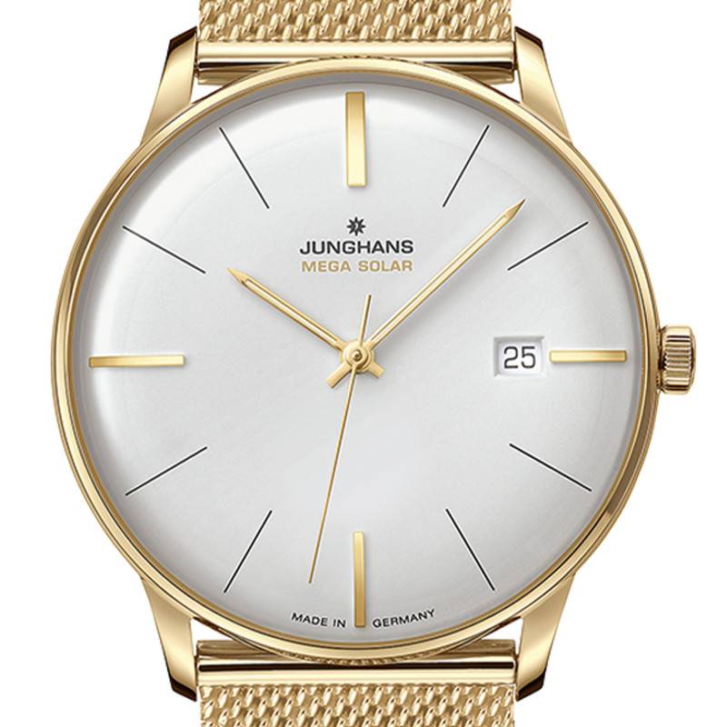 La montre Meister MEGA Solar de Junghans présente un design sobre et raffiné, incarnant l'harmonie parfaite entre technologie et tradition. Le boîtier rond de cette montre est une œuvre d'art de l'ingénierie moderne, conçu pour souligner à la fois la fonctionnalité et l'esthétique. Conçue en acier inoxydable de haute qualité, elle arbore une finition polie qui non seulement la protège mais lui donne également un éclat distinctif. Le diamètre généreux de 38 mm s'harmonise avec une épaisseur de 9 mm, conférant à cette montre une allure à la fois discrète et imposante.