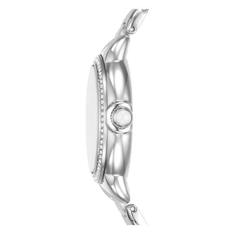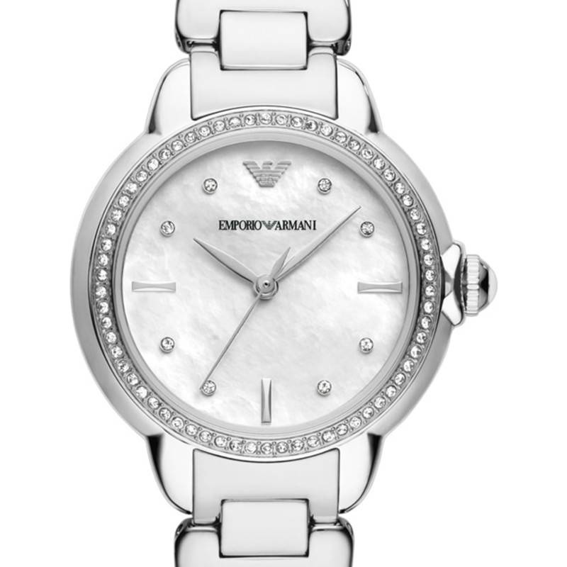 La montre Emporio Armani Mia est une parfaite incarnation de l'élégance mixée à la modernité. Avec son boîtier rond d'un diamètre de 32 mm et une épaisseur de 8,40 mm, elle offre des proportions harmonieuses qui soulignent toute femme d'un style assuré. Fabriquée en acier inoxydable, sa finition polie lui confère une brillance inaltérable et intemporelle. La lunette, habilement sertie de strass, ajoute une touche de glamour. Ce garde-temps exceptionnel est doté d'un verre minéral plat, assurant une protection optimale tout en révélant la splendeur de son cadran.