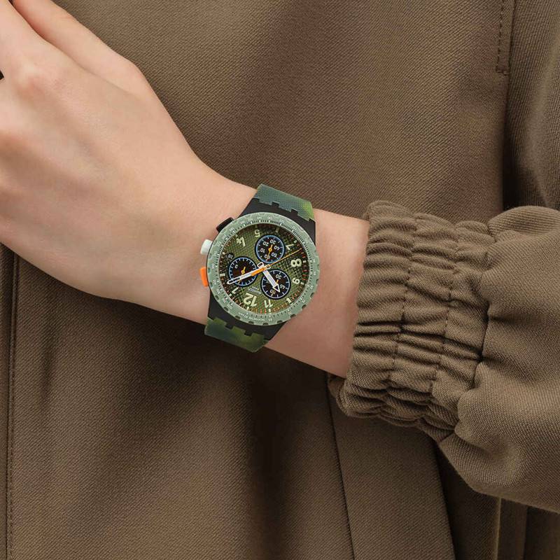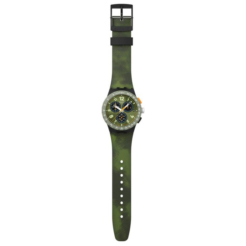 Cette Montre Midday Camo SUSB423 signée Swatch se distingue par son allure élégante et sportive. Le boîtier rond de 42 mm est confectionné en polymère, garantissant à la fois légèreté et robustesse. Sa texture mate et ses couleurs noir et vert lui offrent un style unique, parfait pour ceux qui recherchent l'originalité. Inspirée des motifs militaires, cette montre est idéale pour les hommes aimant les designs contemporains et résolument masculins. Le fond emboité optimise la protection de votre montre tout en assurant une étanchéité à 3 ATM, vous permettant d'affronter la pluie sans crainte. Sa garantie internationale de 2 ans témoigne de sa qualité et de la confiance de la marque dans la durabilité de son modèle.