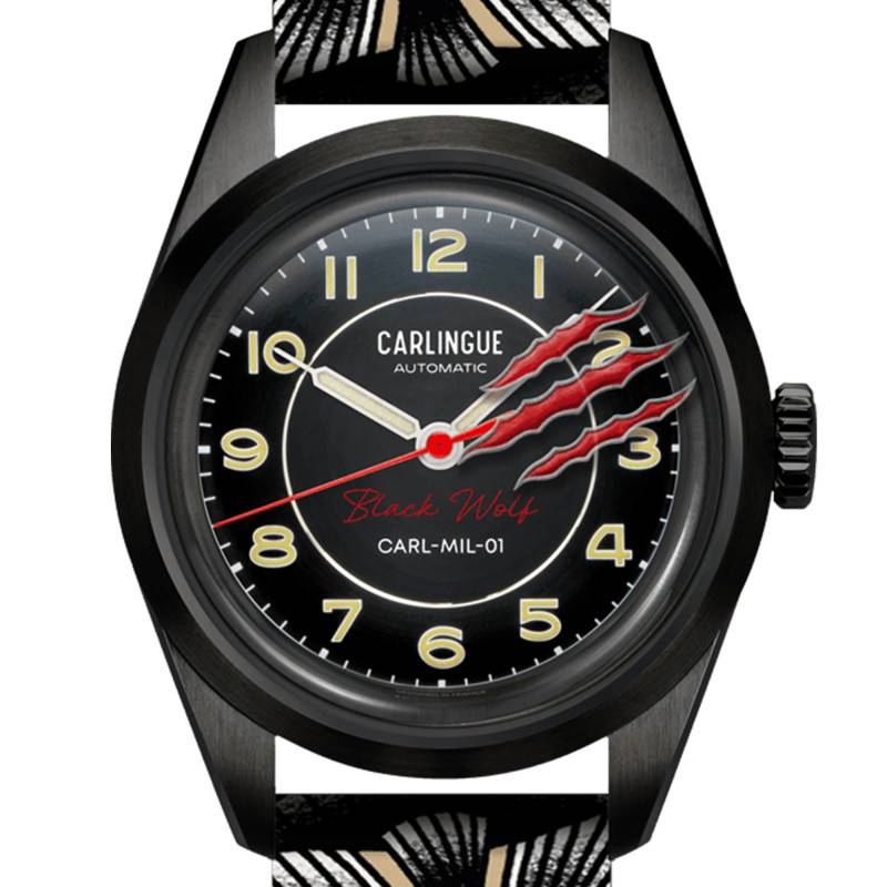 La montre Military 01 Black Wolf incarne l'esprit et le design audacieux de la marque Carlingue. Confectionnée en acier inoxydable 316L, elle présente une robustesse et une durabilité exceptionnelles. La finition mate, notamment brossée, confère à ce garde-temps un aspect moderne et distingué. Le boîtier rond mesure 36 mm de diamètre, parfait pour un confort optimal au poignet, tandis que sa longueur de 45,90 mm et son épaisseur de 10,80 mm assurent une présence remarquable sur la peau. Avec un fond de boîte emboité, cette montre s'affiche comme un objet à la fois pratique et esthétique, résistant à l'usure quotidienne.