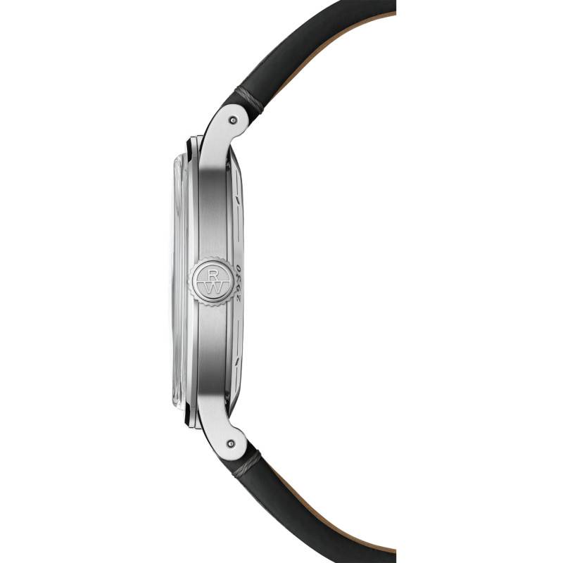 Au cœur de cette montre, l'extraordinaire calibre suisse RW4251, développé sur la base du Sellita SW260-1, alimente le mouvement automatique avec une précision sans faille. Ce calibre se distingue par sa fréquence de 28.800 A/h (4 Hz), assurant une exactitude et une fluidité du déplacement des aiguilles, qui captivent par leur grâce continue. Avec une réserve de marche de 41 heures, cette montre témoigne d'une performance remarquable, soutenant un fonctionnement continu sans faille même pendant les jours de repos.