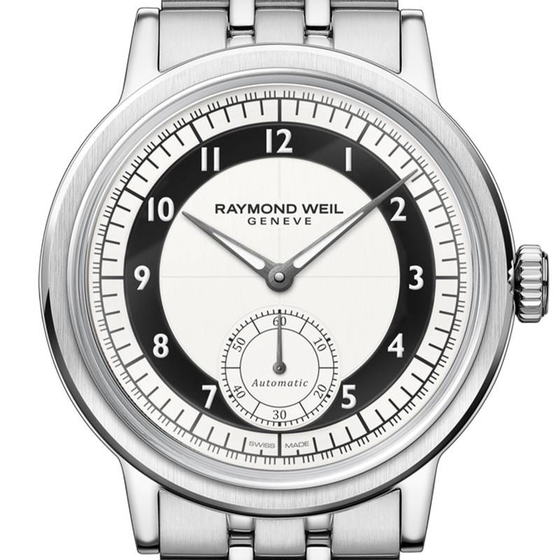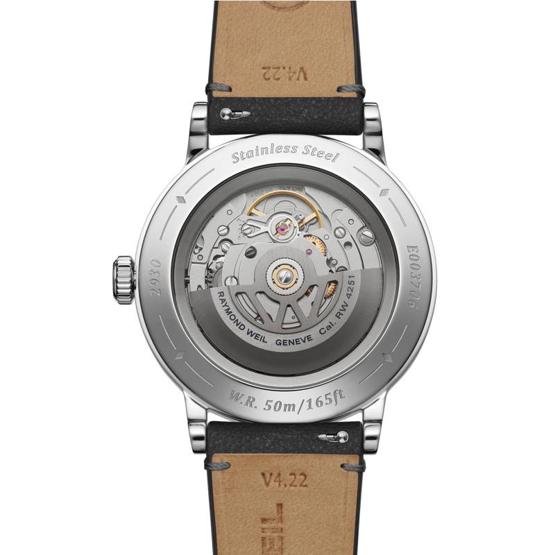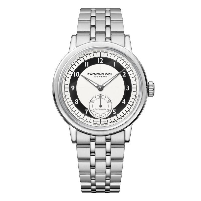 La Millésime Automatique Petite Seconde de Raymond Weil incarne l'essence de l'horlogerie suisse par son design minutieusement élaboré. Son boîtier rond de 39 mm, fabriqué en acier inoxydable de haute qualité, reflète une composition robuste et raffinée, pesant légèrement pour offrir un confort discret au poignet. La profondeur et la structure du boîtier sont accentuées par un fond de boîte transparent, dévoilant le mouvement animé par la masse oscillante qui capte admirablement la lumière à travers un verre saphir bombé. Sa finition alternant entre poli et brossé ajoute une dimension de luxe subtil, tandis que le fond emboîté garantit une étanchéité solide, classée jusqu'à 5 ATM pour supporter les éclaboussures soudaines et les immersions légères.