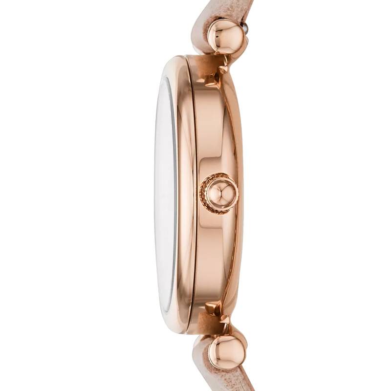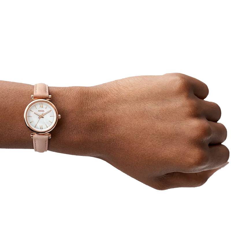 La maison horlogère Fossil vous présente ce ravissant garde-temps issu de sa collection Mini Carlie. Féminin et élégant, ce modèle vous accompagnera dans votre quotidien mouvementé sans encombre. Avec son boîtier PVD or rose de forme ronde affichant un diamètre de 28mm pour une épaisseur de 7mm, cette montre conviendra parfaitement à un poignet féminin. Afin d'assurer la beauté de votre cadran au fil des mois, ce dernier s'équipe d'un verre minéral résistant face aux rayures et aux chocs de la vie quotidienne. Afin de régler l'heure de la plus précise des manières, ce boîtier s'équipe d'une couronne remontoir disposée à trois heures. Son fond de boîte emboité viendra vous garantir une étanchéité de 3 ATM.