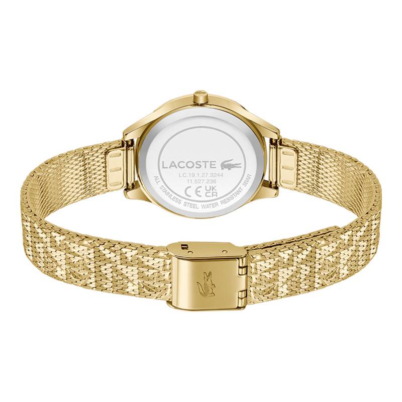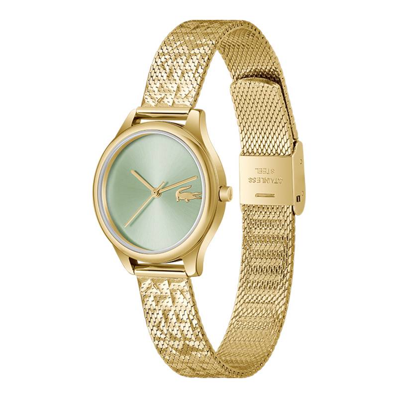 La montre Mini Crocodelle de Lacoste incarne l'élégance moderne avec sa combinaison harmonieuse de couleurs vives et de matériaux de qualité. Son boîtier rond de 28 mm en acier inoxydable se distingue par une finition polie qui brille avec éclat, soulignant un caractère à la fois sophistiqué et audacieux. La montre répond aux besoins des femmes qui recherchent à la fois esthétique et robustesse. Avec sa couronne discrète positionnée à droite, elle assure une manipulation aisée pour le réglage de l'heure. Son design est complété par une lunette en acier, accentuant son allure contemporaine et épurée. Cet ensemble est protégé par un fond emboîté, garantissant solidité et une protection accrue contre les éléments extérieurs.