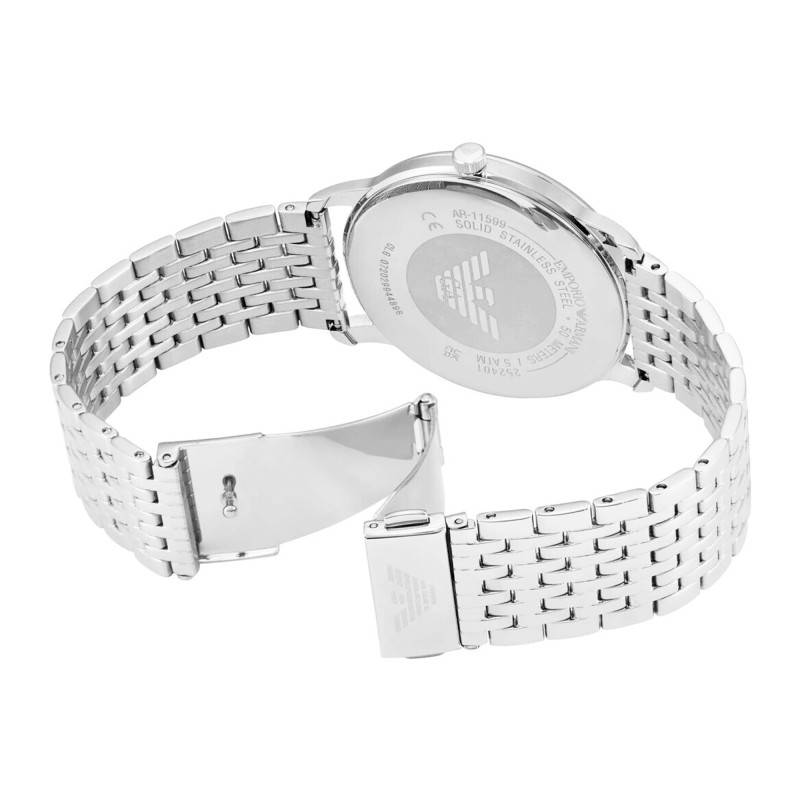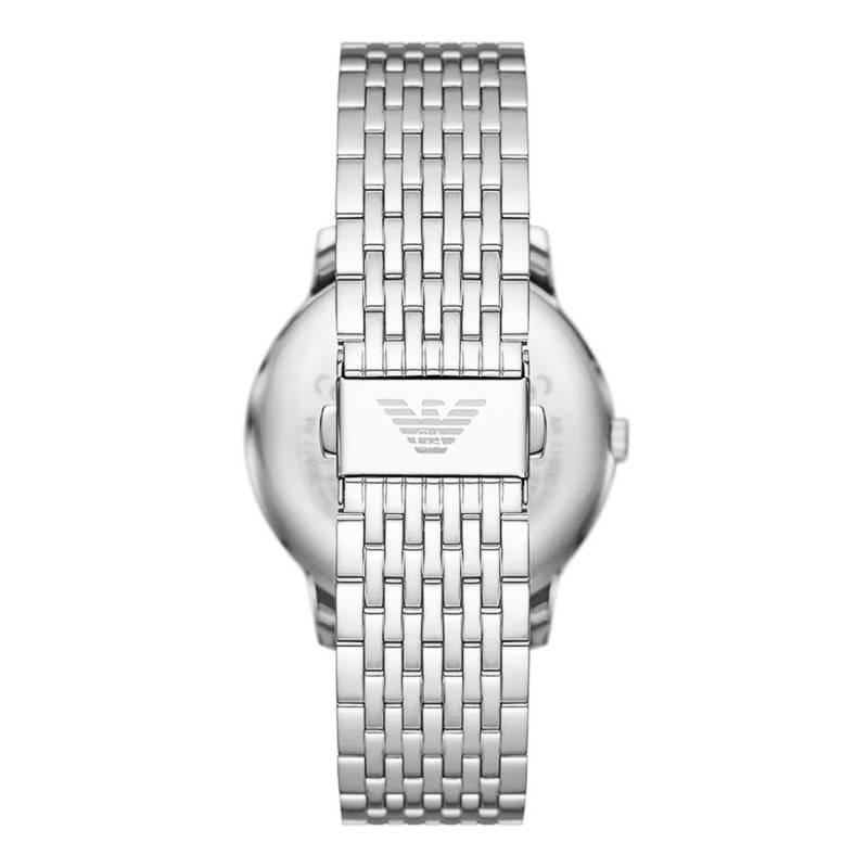 L'étanchéité de cette montre est évaluée à 5 ATM, ce qui la rend résiliente à l'eau pour un usage quotidien, tel que les éclaboussures ou les douches occasionnelles. Cependant, elle n'est pas adaptée à la natation ou à la plongée. Cette résistance à l'eau est rendue possible grâce à l'architecture intelligente du boîtier et du fond emboîté, garantissant que le mouvement interne reste à l'abri de l'humidité. Emporio Armani s'assure à travers cette fonctionnalité essentielle que votre montre non seulement conserve son élégance au fil du temps, mais qu'elle reste également un compagnon fiable dans tous les aspects de votre vie quotidienne, du bureau à d'autres environnements extérieurs exposés à l'eau.