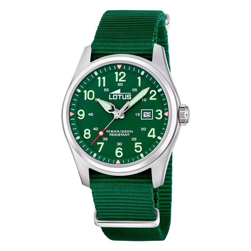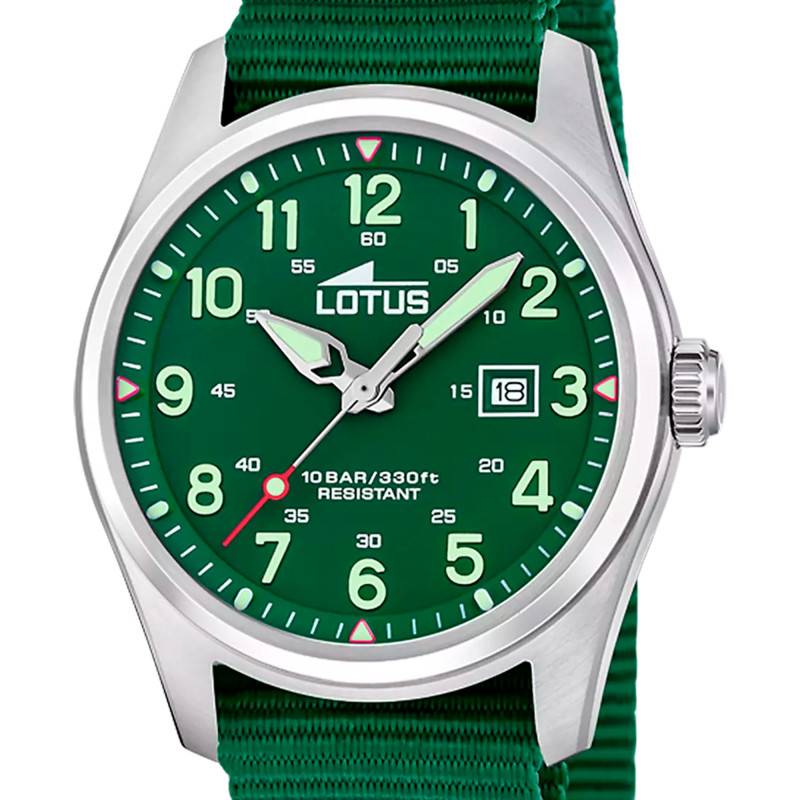 L'attrait principal de cette montre Lotus réside dans son cadran vert avec finition mate, qui lui confère une allure rafraîchissante et moderne. Les chiffres arabes sont clairement lisibles et, associés aux aiguilles et index luminescents, permettent une lecture facile même dans des conditions de faible luminosité. Ce cadran est aussi équipé d'un guichet date subtilement intégré à 3 heures, apportant une fonctionnalité supplémentaire sans perturber l'esthétique sobre du cadran. Des détails tels que le verre minéral qui couvre le cadran garantissent non seulement sa protection mais ajoutent également à la pureté visuelle de l'ensemble grâce à son reflet minimal. Le chemin de fer minutieusement dessiné au bord du cadran complète cette impression de précision et de qualité.
