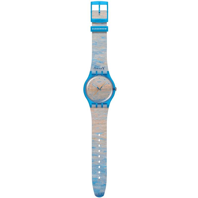 La montre Monet's Palazzo Ducale de Swatch se distingue par son style à la fois moderne et artistique. Sa fabrication suisse témoigne d'une expertise horlogère de haut niveau. Le boîtier est de forme ronde et conçu en matériau biosourcé, ce qui souligne l'engagement de la marque envers des pratiques durables. Avec ses dimensions de 41 mm de diamètre, ce garde-temps s'adapte parfaitement à un poignet féminin ou masculin. Légère, avec un poids du boîtier de seulement 21,50 grammes, cette montre offre un confort incomparable au quotidien.