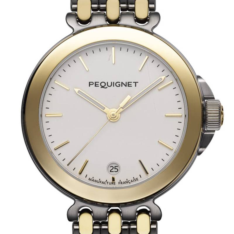 Le bracelet de cette montre Pequignet Moorea est une véritable œuvre de design, alliant confort et prestige. Fabriqué en acier inoxydable 316L, il arbore une finition polie conférant un éclat durable à ce précieux accessoire. Le choix de couleurs gris et jaune pour le bracelet accentue la sophistication de l'ensemble et s'accorde parfaitement avec les détails du boîtier. Une boucle déployante robuste permet de fermer le bracelet facilement tout en offrant sécurité et confort d'utilisation au quotidien. Avec son entrecorne de 19,60 mm, ce bracelet s'adapte avec aisance à une multitude de poignets, s'imposant comme le compagnon idéal, que ce soit pour une journée de travail ou une soirée de gala.