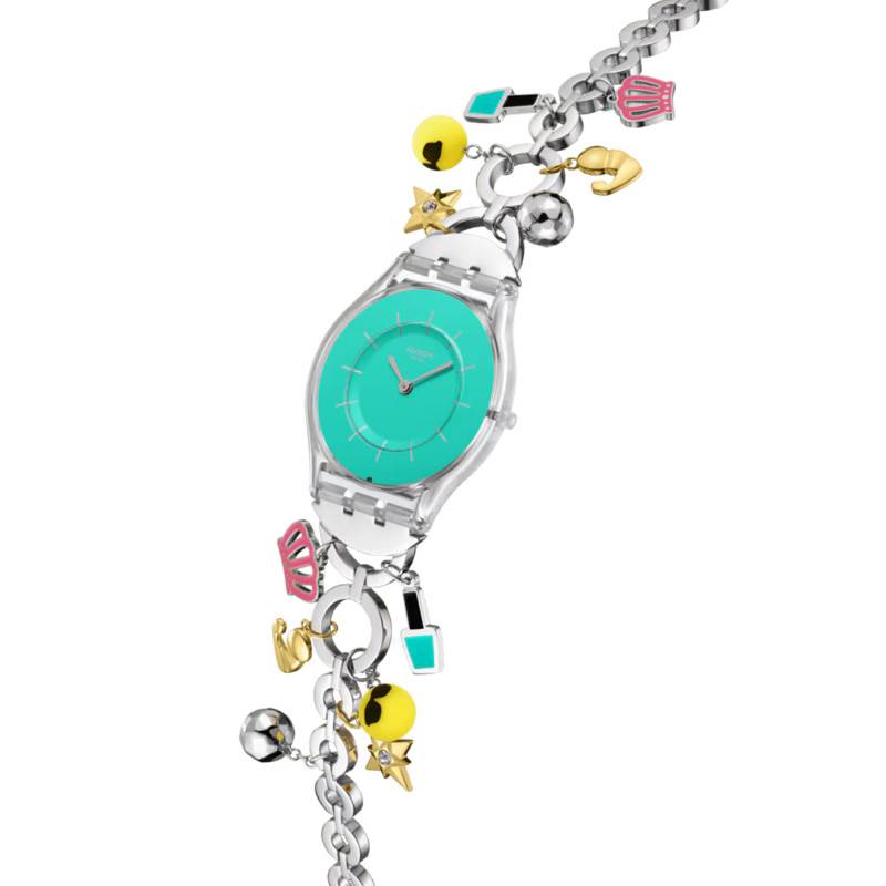 La montre Mother'S Day Mother Like No Other par Swatch est un splendide exemple de raffinement horloger conçu pour sublimer le poignet féminin. Dotée d'un boîtier rond en matériau biosourcé, elle allie l'aspect esthétique moderne avec le respect de l'environnement. Sa légèreté est incomparable avec une épaisseur de seulement 4,30 mm, facilitant le port quotidien. Le boîtier transparent, brillant et résistant met en valeur son doux contraste avec le bracelet en acier inoxydable poli de couleur gris.