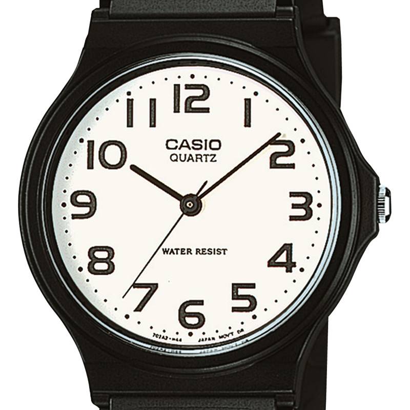 La montre Casio Timeless MQ-24-7B2L incarne une simplicité élégante idéale pour ceux qui recherchent un accessoire polyvalent et fiable. Son boîtier rond en résine noire, aux dimensions discrètes de 34,90 mm de diamètre et une épaisseur de 7,80 mm, assure une légèreté remarquable tout en offrant un confort inégalable. Une couronne unique, discrètement placée sur le côté droit, permet un réglage facile et précis de l'heure, rehaussant l'ergonomie de ce modèle.