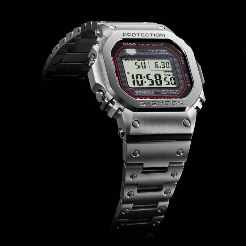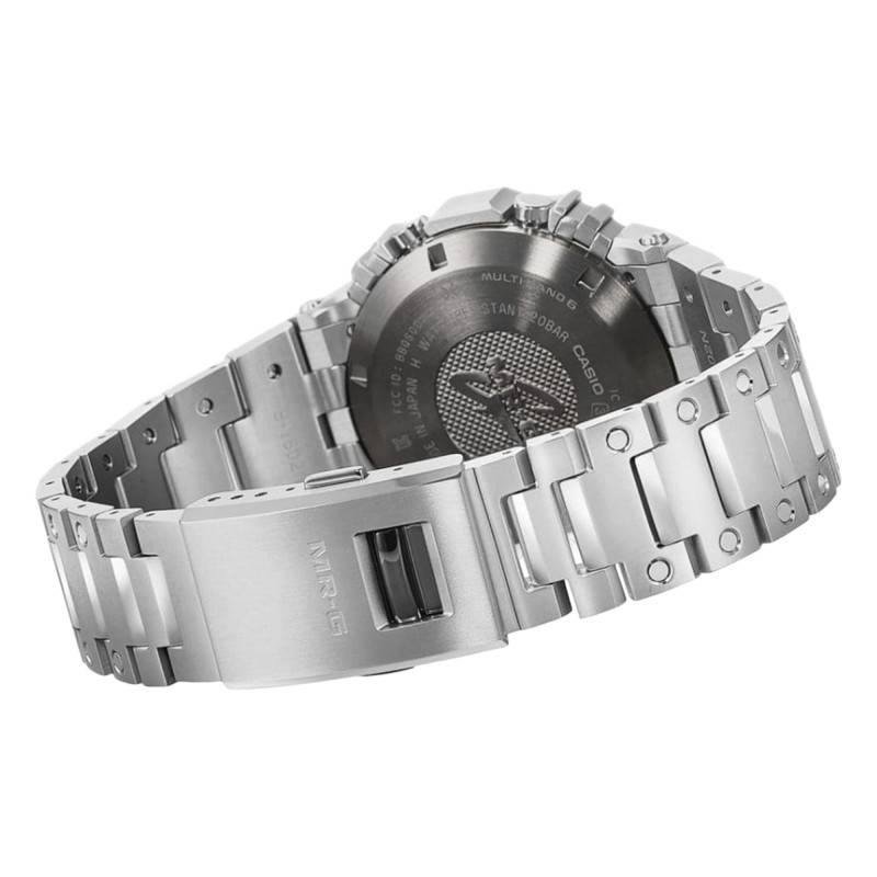 Casio est une marque japonaise réputée dans les quatre coins du globe pour ses gadgets numériques fonctionnels, polyvalents et durables, dont des calculatrices, des appareils photo, des instruments de musique et également des montres. Depuis le lancement de son premier modèle horloger en 1974, elle n'a eu cessé de séduire les amoureux de l'horlogerie par des créations intemporelles et tendances qui séduisent par leur excellent rapport qualité/prix, leur style indémodable et leur ADN singulier. Sa collection G-Shock a pu conquérir le cœur de tous les amateurs de montres de terrain en leur proposant des modèles robustes, ultrarésistants et sophistiqués qui mettent en avant le parfait équilibre entre esthétique, fonction et précision. Puisant dans ses vastes archives, la marque remet au goût de jour le design iconique de son premier modèle G-Shock et lance sa nouvelle série MRG-B5000, une ligne incontournable qui capture l'aspect racé et innovant de la G-Shock en le mêlant à la tradition artisanale. De cette gamme, nous vous présentons cette charmante montre MRG-B5000D-1DR destinée aux esprits libres, aventuriers et audacieux en quête d'un garde-temps à leur image ! Cette dernière fascine par son design modernisé, sa beauté épurée et sa technicité repoussée, faisant le choix idéal pour un quotidien plus dynamique. Elle saura s'accorder avec toutes vos tenues et viendra vous assister durant vos activités extrêmes en vous offrant une panoplie de fonctionnalités qui vous permettront de profiter de chaque seconde de votre journée. Élaborée dans une vision haut de gamme avec des métaux de pointe les plus modernes et des finitions résolument soignées, elle est équipée d'un boîtier résistant aux chocs de forme octogonale qui se posera doucement sur votre poignet en vous assurant un grand confort au port. Pensé pour la gent masculine, ce dernier est réalisé en alliage de titane très dur à base de “Ti64”, ce qui le rend hautement robuste, résistant et durable. Il arbore une finition brossée et un polissage Sallaz qui met en avant la délicatesse de sa conception tout en lui accordant un aspect brillant saisissant. De couleur argentée, il mesure 49,40 mm de longueur, 43,20 mm de largeur et 12,90 mm d'épaisseur en affichant un poids de 114 gr. Il est formé par 25 composants différents, dont chacun a été poli individuellement, offrant cette texture singulière d'un niveau de détail supérieur. Sa structure Multi-Guard intègre des ressorts plats, des barres en T et des tampons en silicone, garantissant une absorption des chocs exceptionnelle. Sa lunette octogonale marquée par les deux mentions “G-Shock” et “Protection” est réalisée en alliage de cobalt et de chrome COBARION®, ce qui permet une résistance accrue aux aléas du quotidien. Le tout est fini avec un revêtement en carbure de titane qui accorde à la montre une brillance métallique exquise. La carrure du boîtier loge quatre boutons poussoirs qui vous aideront à manipuler votre montre, à naviguer entre les différentes fonctions et à activer le mode souhaité. Par ailleurs, un verre saphir hypertransparent et traité anti-rayure vient passer par-dessus le cadran, assurant une haute protection contre les chocs et les éraflures du quotidien tout en permettant une lecture de temps impeccable grâce à son revêtement anti-reflets. Au verso, le fond de boîte vissé garantit à la montre une étanchéité de 20 ATM, ce qui vous permettra de la porter dans vos aventures sous-marines.