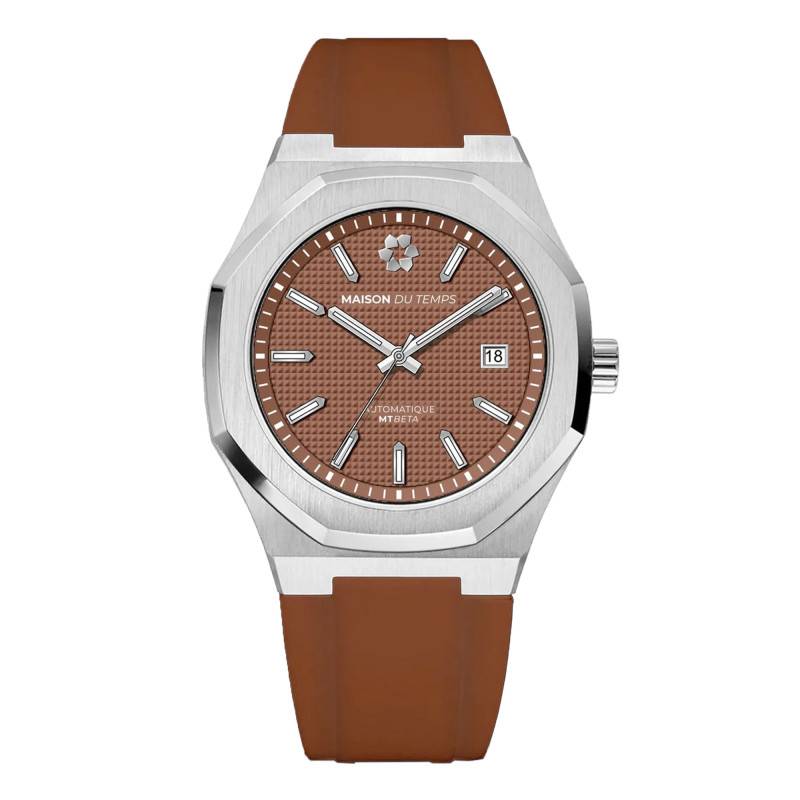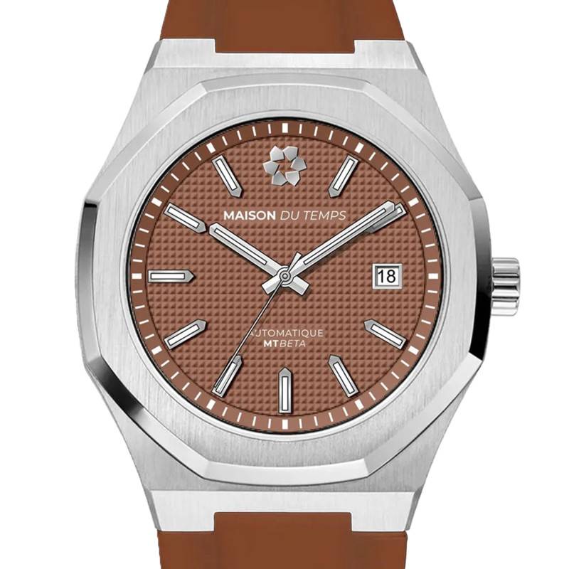 Cette montre pour homme de Maison du Temps est une fusion parfaite de design élégant et de fonctionnalité exceptionnelle. Le boîtier est de forme octogonale, une caractéristique qui lui confère une allure avant-gardiste et unique. Fabriqué en acier inoxydable 316L, le boîtier est robuste et résistant tout en proposant une alternance de finitions polies et satinées. Avec un diamètre de 42 mm et une épaisseur de 11 mm, cette montre assure une présence remarquée au poignet tout en restant pratique pour un usage quotidien. Le verre saphir plat améliore sa résistance aux rayures, offrant ainsi une protection longue durée au cadran. Son fond transparent vissé révèle la beauté du mouvement automatique.