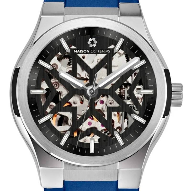Maison du Temps présente ici une montre pour homme qui allie modernité et sophistication grâce à un design squelette intrigant. Le boîtier rond est fabriqué en acier inoxydable 316L, réputé pour sa robustesse et sa résistance à la corrosion. Avec un diamètre de 41 mm, cette montre impose une présence affirmée au poignet, tandis que son épaisseur de 11 mm assure un confort impeccable. La lunette en acier apporte une note élégante et se marie harmonieusement avec la finition à la fois mate et polie du boîtier. Pesant 80 g, elle trouve l'équilibre parfait entre légèreté et sensation de qualité. Le fond de boîte vissé, équipé d'un verre saphir plat, garantit non seulement une lisibilité claire mais aussi une protection assurée contre les éraflures.