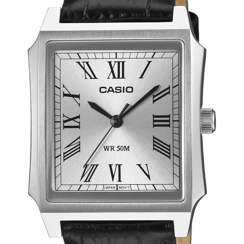 Le cadran de cette montre Casio, avec sa finition soleillée, capte la lumière et la diffuse en une brillance subtile qui évoque sophistication et style. Le ton gris du cadran est en harmonie parfaite avec le boîtier en acier inoxydable, produisant un ensemble visuel à la fois harmonieux et audacieux. Les chiffres romains noirs apportent une touche classique qui s'équilibre élégamment avec la modernité de la forme rectangulaire. Un chemin de fer parcourt la circonférence du cadran pour faciliter la lecture de l'heure en ajoutant une dimension fonctionnelle à la beauté esthétique.