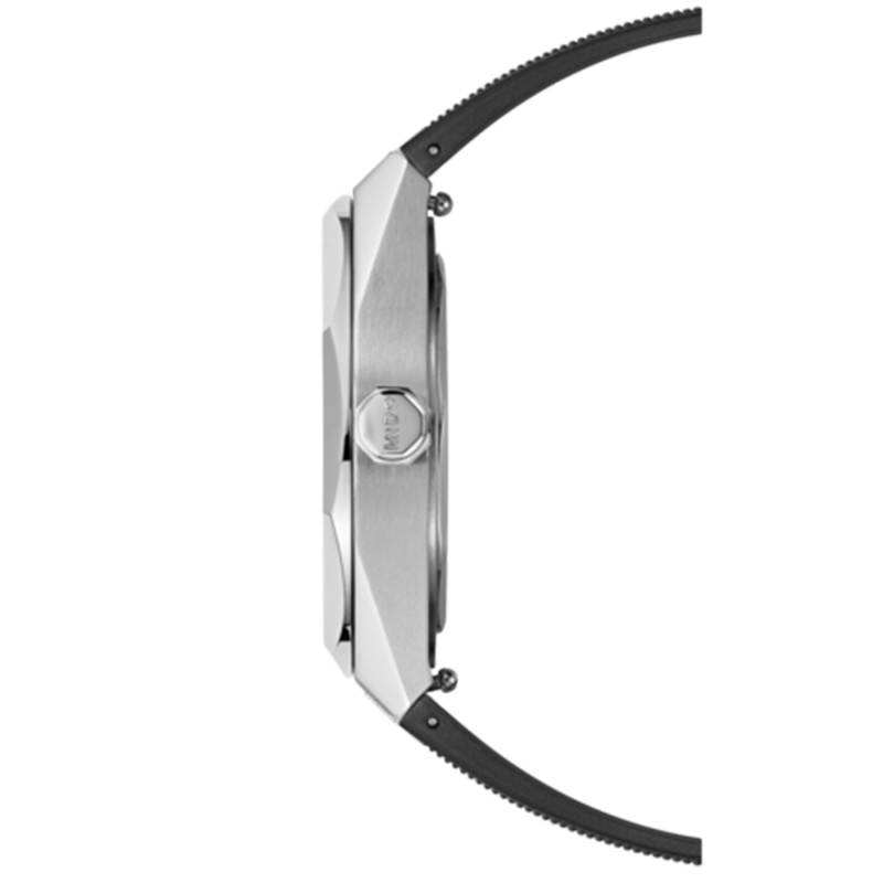 Cette montre exceptionnelle de la collection Mido Multifort 8 One Crown incarne le parfait équilibre entre sophistication et fonction. Conçue pour l'homme moderne, cette montre est un exemple par excellence d'artisanat suisse, avec son boîtier rond fabriqué en acier inoxydable de haute qualité. La combinaison d'une finition mate et polie ajoute à l'élégance générale du modèle tout en procurant une sensation de solidité. Avec un diamètre de 40 mm, elle est suffisamment imposante pour se démarquer, mais reste discrète pour un look polyvalent, idéal pour toutes les occasions. Le boîtier a une épaisseur de 9,90 mm et un poids optimisé de 156 g, garantissant un port confortable tout au long de la journée. Le design minimaliste est accentué par un fond de boîte transparent, permettant aux passionnés de montres d'admirer les rouages internes du mouvement automatique, un véritable spectacle qui témoigne du savoir-faire minutieux de Mido.